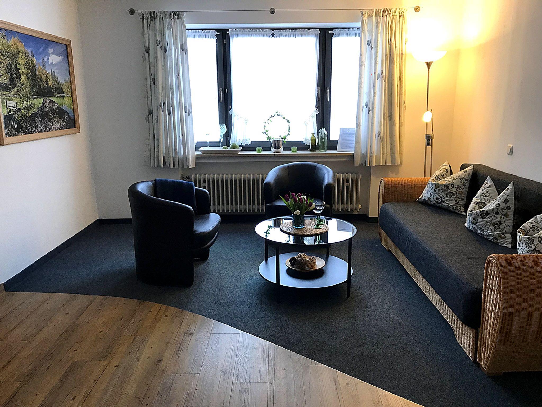 Unsere gemütliche Ferienwohnung befindet sich im Erdgeschoss. Sie verfügt über 1 separates Schlafzimmer, 1 Bad mit Du/WC/Fön und Kosmetikspiegel. Das Wohnzimmer ist mit SAT/TV und einer gemütlichen Sitzecke (mit Ausziehcouch) ausgestattet. Die Küche ist komplett eingerichtet mit Backofen und Mikrowelle und einem separatem Esstisch und allem was Sie für einen entspannten Urlaub benötigen. Unsere große Terrasse auf der Ost- und Südseite lädt alle Gästen zum Entspannen und gemeinsamer Unterhaltung ein. Die Grillmöglichkeit befinden sich direkt am Haus. Ein Trockenraum für Ski und Zubehör sowie ein Stellplatz für Räder stehen zur Verfügung. Brötchenservice ist extra buchbar. Auf Wunsch können auch Doppel- und Einzelzimmer mit Dusche/WC dazugebucht werden.