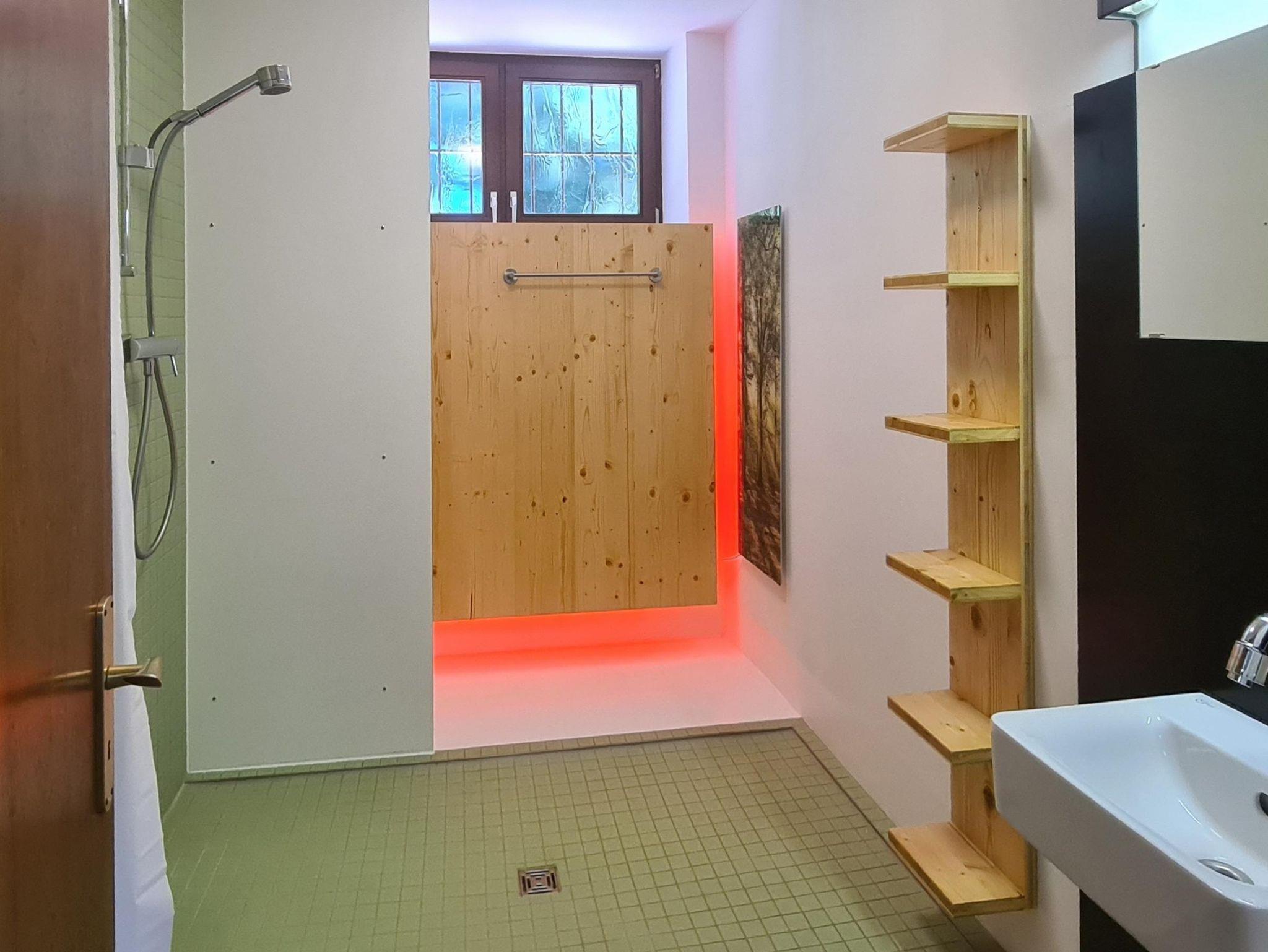 - im Erdgeschoss ein weiteres Duschbad und ein separates WC.