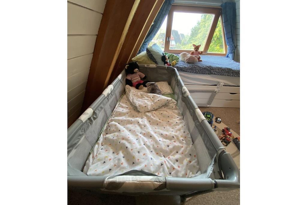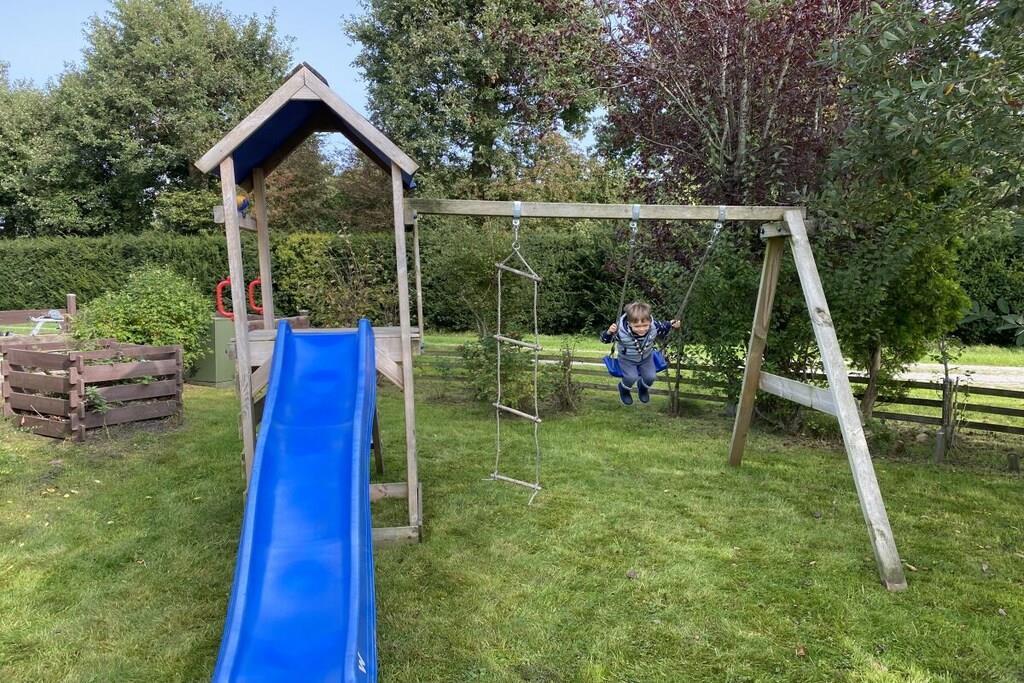 Freshly renovated holiday home in a dream location for the whole family! Everyone gets their money's worth here. The large property with its own garden and climbing frame makes it ideal for families with children. Your own rowing boat is right in front of the terrace, from which you can experience a wonderful sunset. The grill and fireplace invite you to relax. In the middle of a holiday home settlement, which is very quietly located in the East Frisian nature, you can relax in a natural way. The holiday home also offers two kayaks with which you can explore the canals and lakes. Fishing, swimming, surfing, hiking and cycling to the "Großes Meer" nature reserve are great ways to spend your time. The house has a master bedroom with a double bed and a children's bedroom with 2 beds. This room is perfectly equipped for the little ones with a children's table, toys, painting supplies and books: We have lovingly furnished it and our 4-year-old son thinks it's great :-)