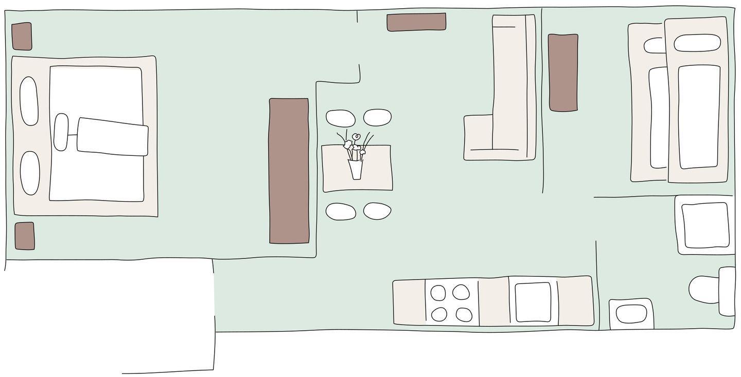 ° gemütlicher Wohnbereich mit Essecke und Sofa