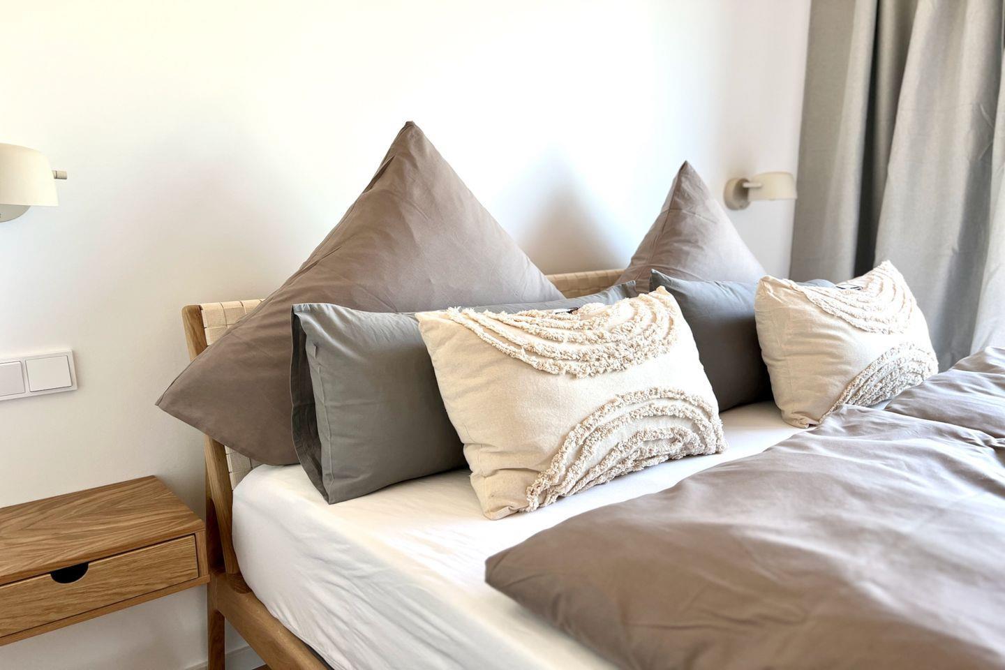 Der natürliche Einrichtungsstil zeichnet sich durch warme, beruhigende Töne sowie organische Materialien und Formen aus. Wir holen die Natur ins Haus und schaffen eine harmonische, erdverbundene Atmosphäre. Von allen Zimmern aus hat man durch große Fenster einen Blick in die Weite. Großzügige überdachte Terrassen bieten Schutz vor Sonne und Regen. Diese luxoriöse Wohneinheit ist für 6 Personen geeignet. Moderner Komfort kann mit allen Annehmlichkeiten eines Bauernhofurlaubes verbunden werden.