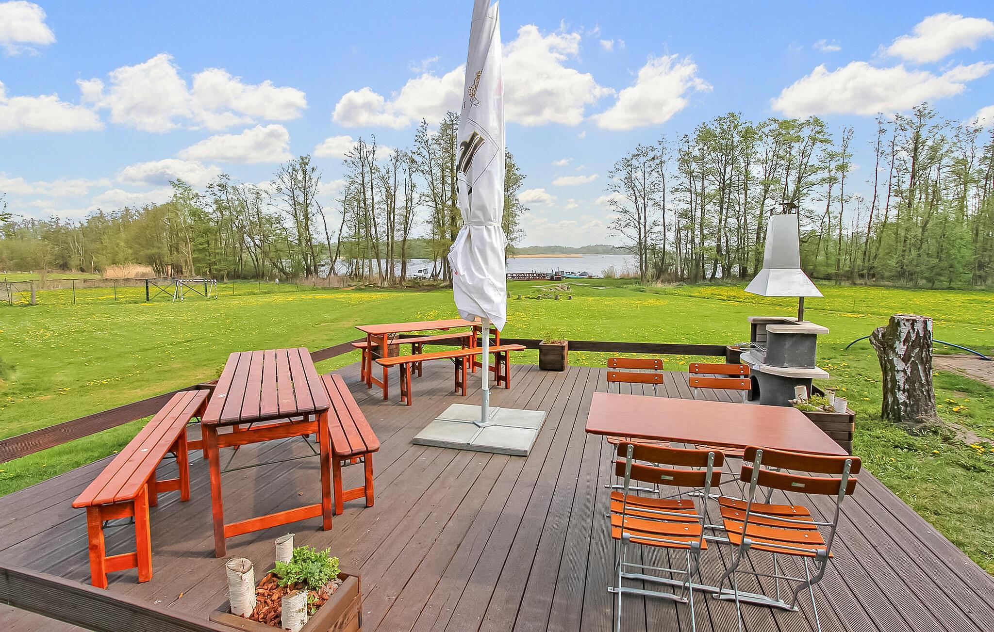 En semesteranläggning med totalt 8 semesterlägenheter i ett mycket vackert läge på en 15 000 kvadratmeter stor, mycket välskött och helt inhägnad sjötomt direkt vid Müritz södra strand. På fastigheten finns flera möblerade sittplatser (delvis under tak), en lekplats, en båt-, fiske- och badbrygga, grillplats, lägereldsplats, en sjöterrass direkt vid Müritz och gott om plats för sport och spel. Fastigheten erbjuder de bästa förutsättningarna för en aktiv natursemester. Ägaren hyr ut flera olika båtar, t.ex. licensfria motorbåtar, trampbåtar, kajaker/kanoter och stand-up paddleboards (mot en avgift på plats). Tack vare den rekommenderade Müritz-cykelvägen, som går direkt genom byn, kan området också enkelt utforskas med cykel. Om du tar med egna cyklar kan du naturligtvis förvara dem säkert. Värden hyr ut totalt fyra cyklar (mot en avgift). Semesterlägenheterna, som varierar i storlek, moderniserades 2017. Två lägenheter ligger separat i värdens hus, de andra lägenheterna ligger i ett gästhus. Alla boenden har WLAN-anslutning. En barnsäng och barnstol kan tillhandahållas för små barn. Slutstädning, vatten- och energiförbrukning ingår i det totala priset. Du kan ta med dig egna sängkläder och handdukar eller hyra dem på plats.