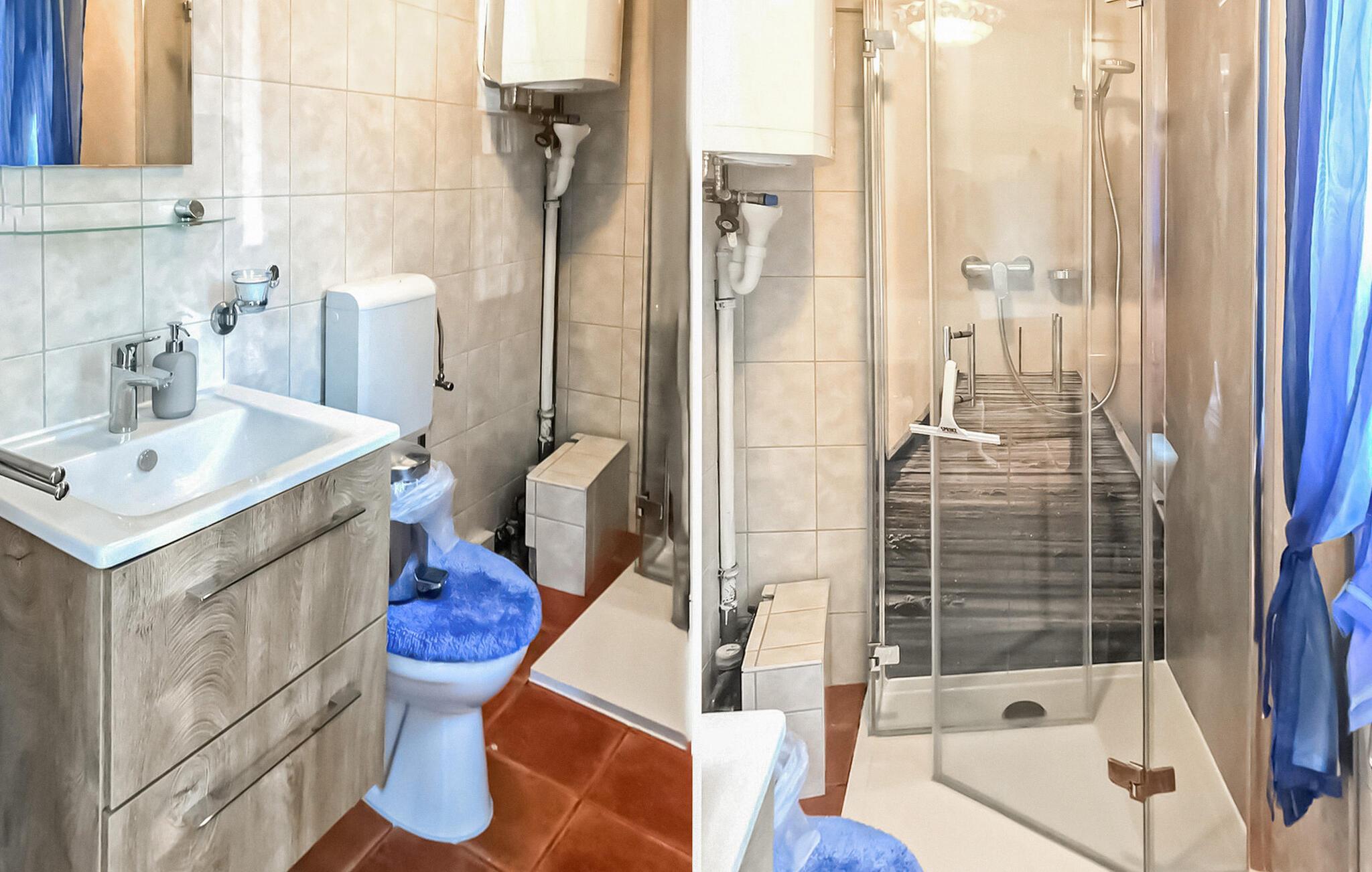 Badrum (nr. 1) - WC: Varmt och kallt vatten. Dusch