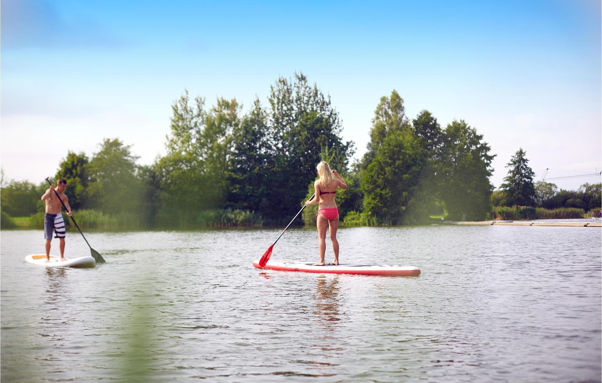 Semesterbyn erbjuder fritidsaktiviteter för hela familjen. Ta er direkt från semesterhuset till den vackra stranden i badkläderna eller hyr en SUP för att paddla runt sjön. Vattenskid- och wakeboardanläggningarna vid sjön Rumpelsee ger massor av action. Här kan du (mot en avgift) ta dina första vattenskidåkningssteg som nybörjare eller finslipa din teknik och dina hopp som ett riktigt proffs. En lekplats, en beachvolleybollplan och vandringsleder kompletterar utbudet.