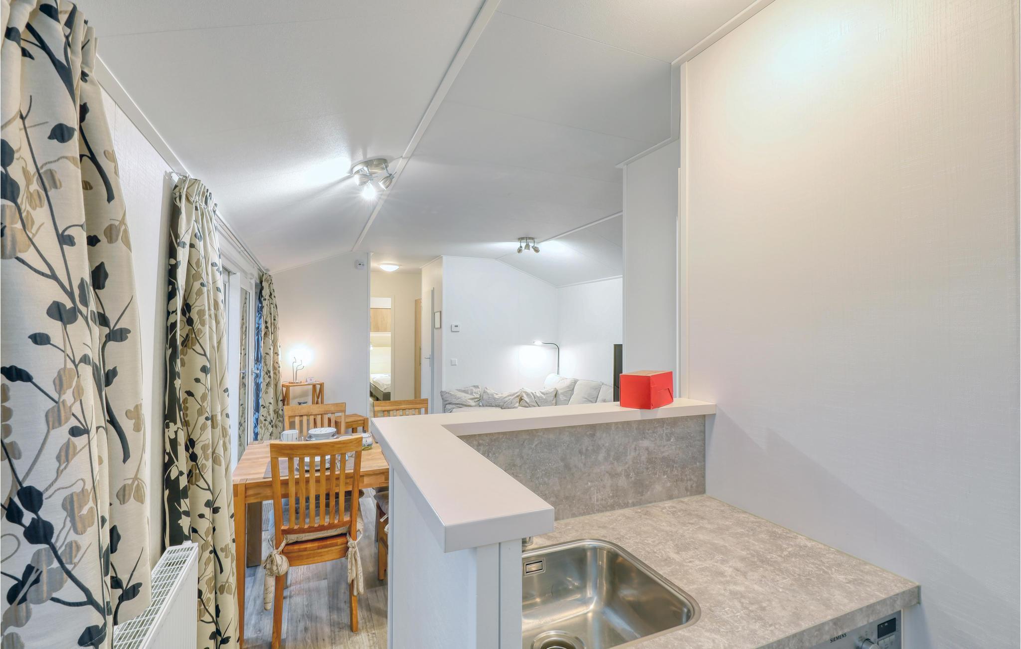 Ditt bekväma och mysigt inredda semesterhus har två separata sovrum och ett vardagsrum med pentry. Här finns 4 kokplattor, diskmaskin, kylskåp och kaffebryggare. Trädgårdsmöbler och solstolar finns så att du kan avrunda din actionfyllda dag med en kvällsmåltid i den friska luften. En grill kan lånas gratis. På begäran och i mån av tillgång kan en barnstol lånas för din vistelse mot en mindre avgift.