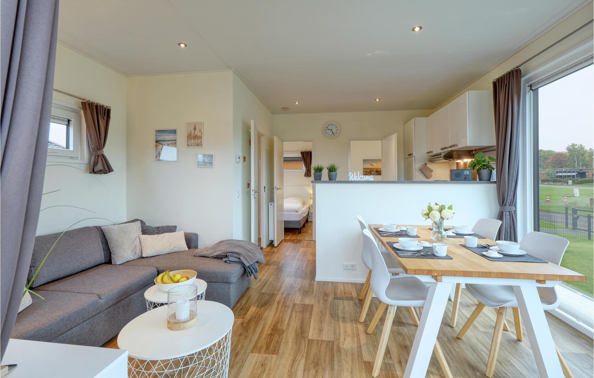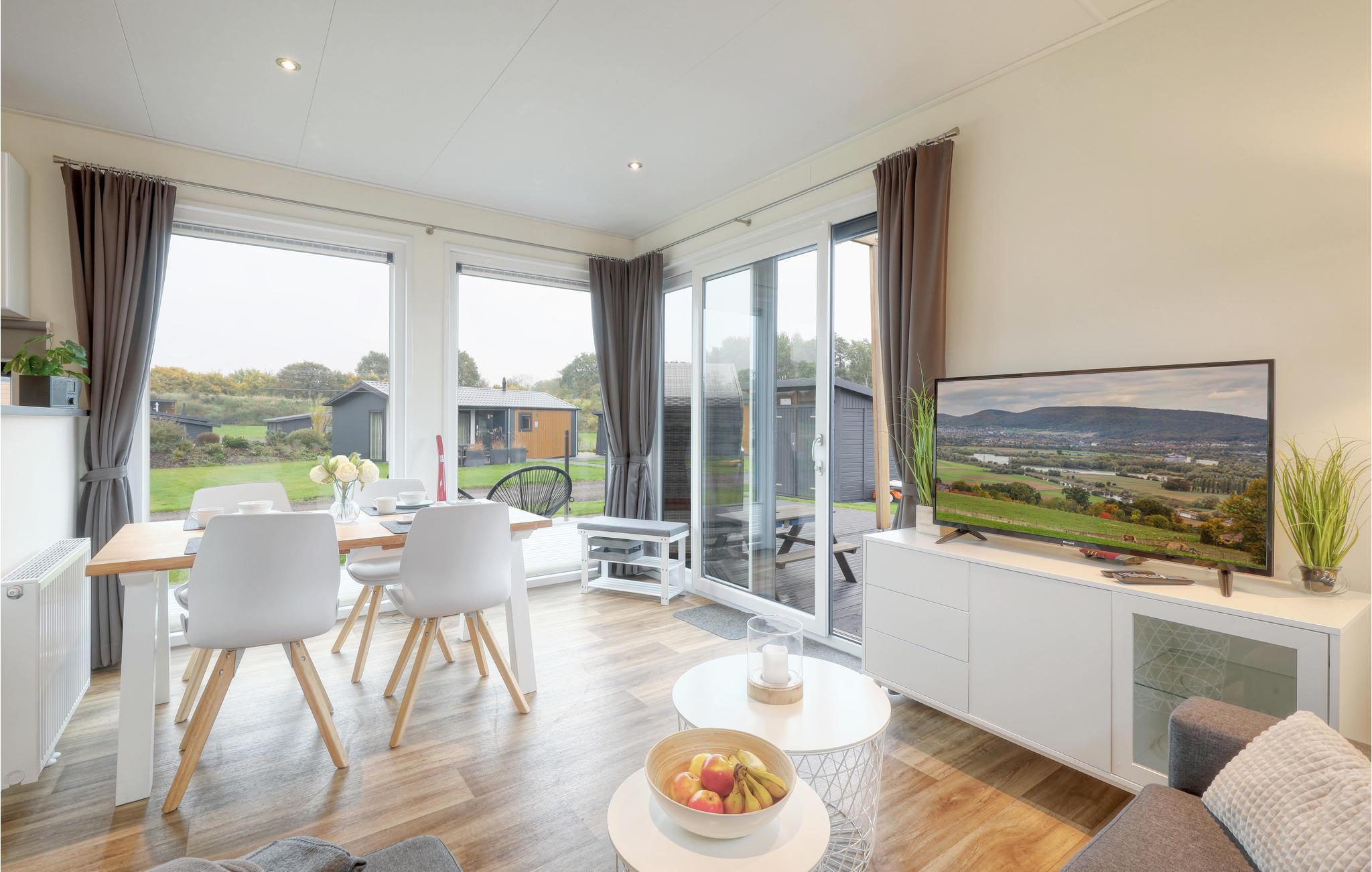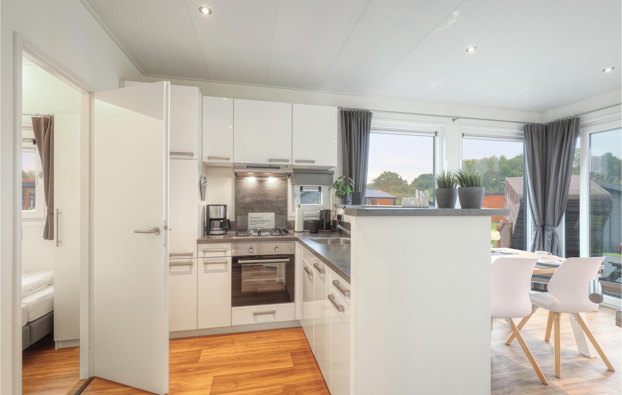 Din bekväma och mysigt inredda chalet har två separata sovrum och ett vardagsrum med pentry. Här finns fyra kokplattor, diskmaskin, kylskåp och kaffebryggare. Trädgårdsmöbler och solstolar finns tillgängliga så att du kan avrunda din actionfyllda dag med en kvällsmåltid i den friska luften. En grill kan lånas gratis.