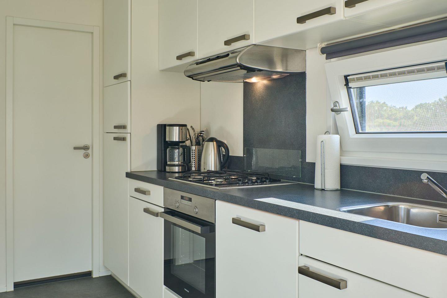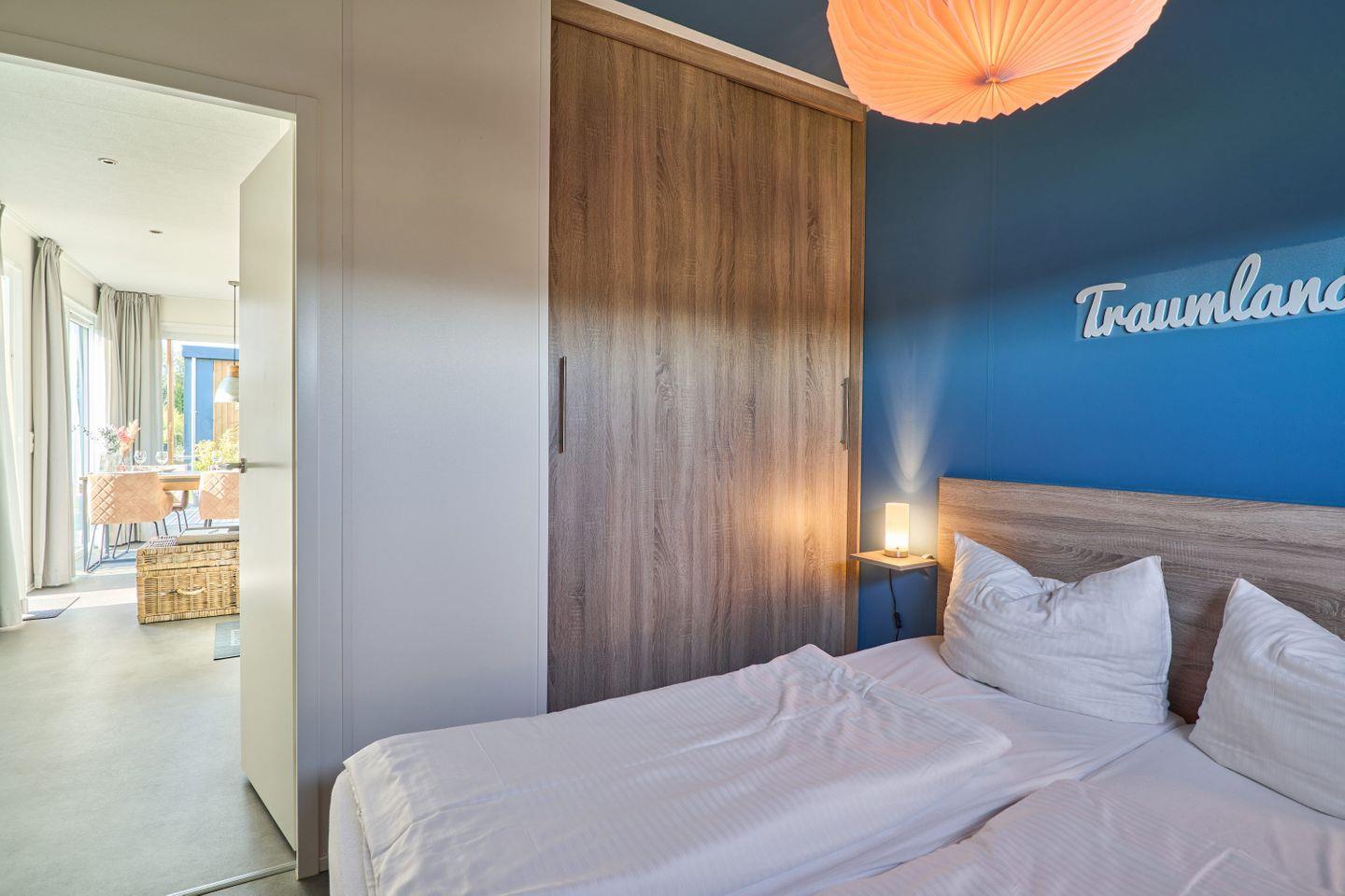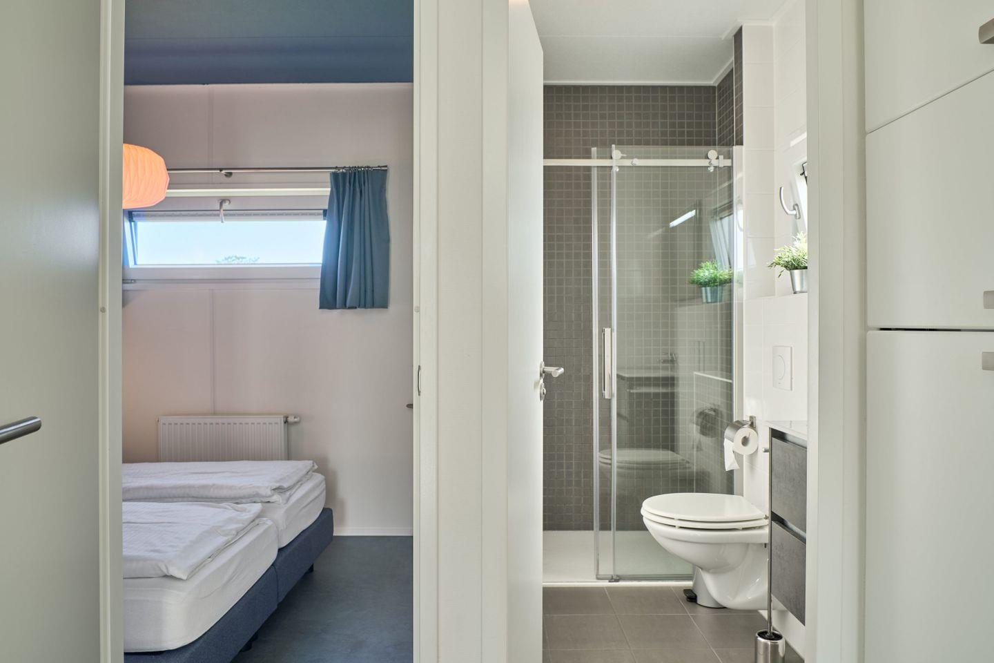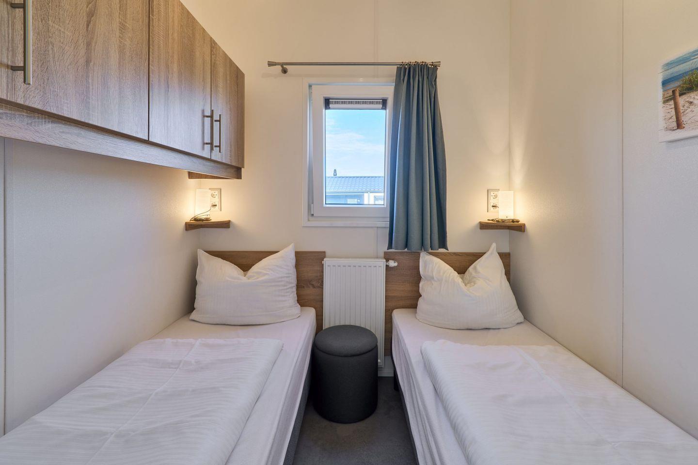 Das Chalet verfügt über zwei separate Schlafzimmer mit je einem Vinylbodenbelag, insgesamt stehen vier Schlafplätze bereit. Das Tageslichtbadezimmer ist mit einer bodengleichen Dusche, WC, Waschbecken, Spiegel und Handtüchern ausgestattet. Bettwäsche ist inklusive. In gemeinschaftlicher Nutzung stehen Ihnen Waschmaschine und Trockner zur Verfügung, ein Staubsauger befindet sich im Haus.