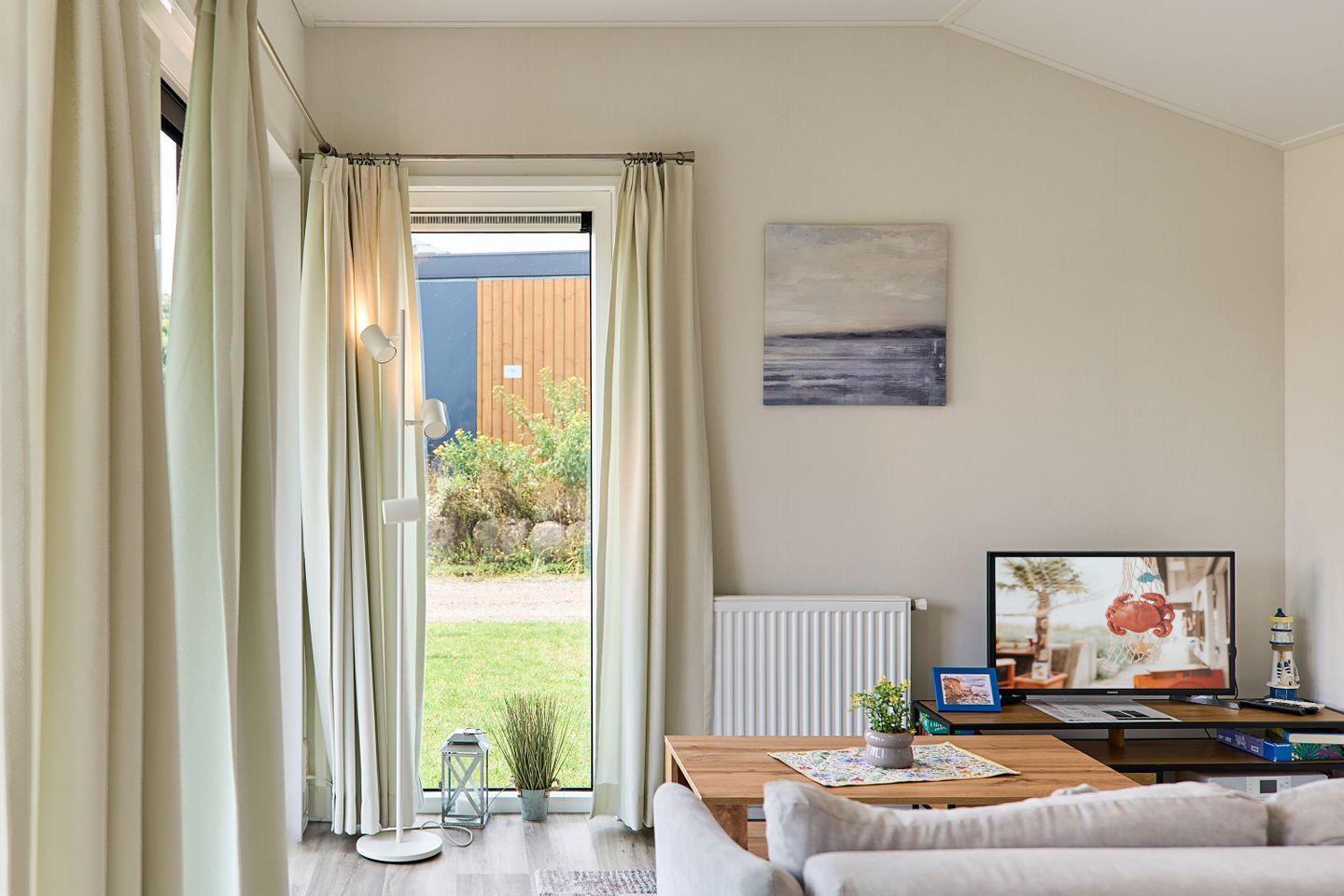 Das Ferienhaus ist für Familien mit Kindern hervorragend geeignet und zeichnet sich durch kinderfreundliche Ausstattung sowie einen Spielplatz in der Ferienanlage aus. Babys sind ebenfalls herzlich willkommen. Die moderne Raumaufteilung mit offen gestalteter Küche zum Wohnzimmer schafft eine angenehme Wohlfühlatmosphäre, die durch ein komfortables Sofa und einen Esstisch ergänzt wird. Die Küchenzeile ist mit Herd, Backofen, Kühlschrank, Gefrierfach, Spülmaschine, Kaffeemaschine, Wasserkocher, Toaster und sämtlichen Küchenutensilien ausgestattet und ermöglicht die bequeme Selbstversorgung mit allem, was dazu gehört. Geschirr, Besteck sowie Geschirrhandtücher werden bereitgestellt.
