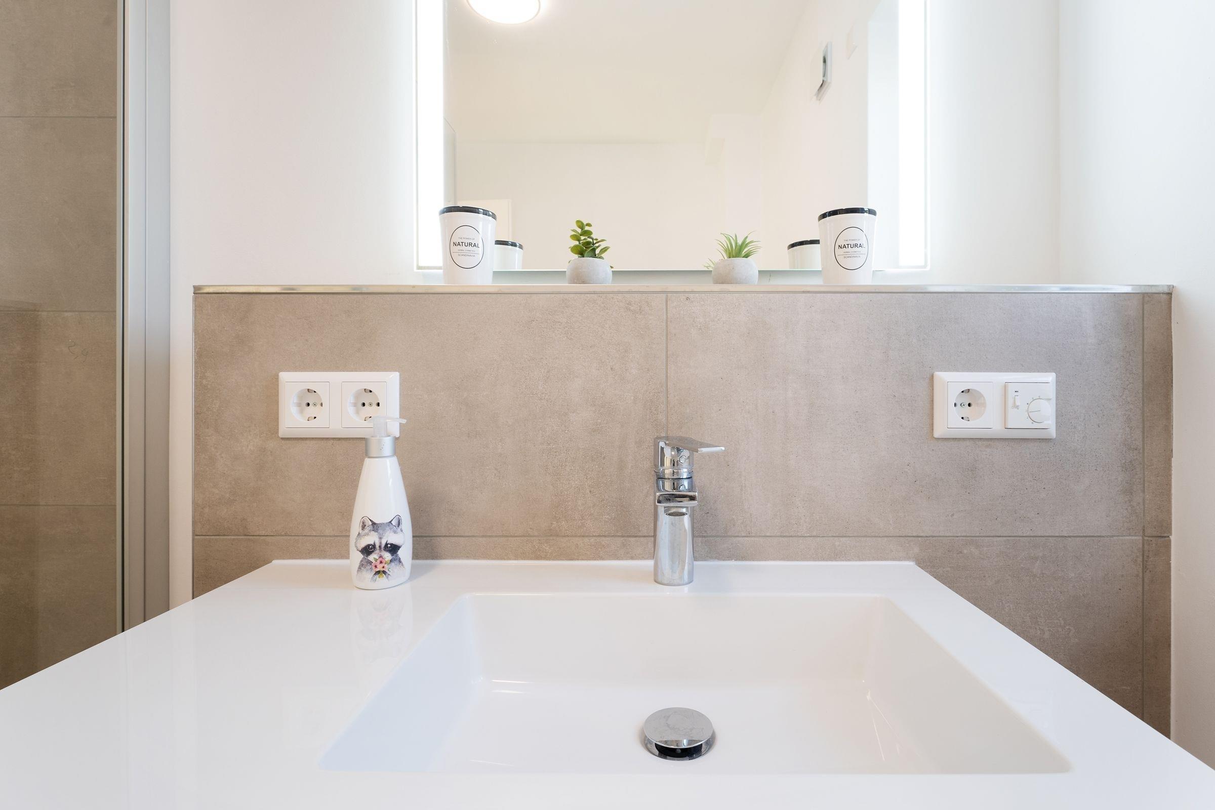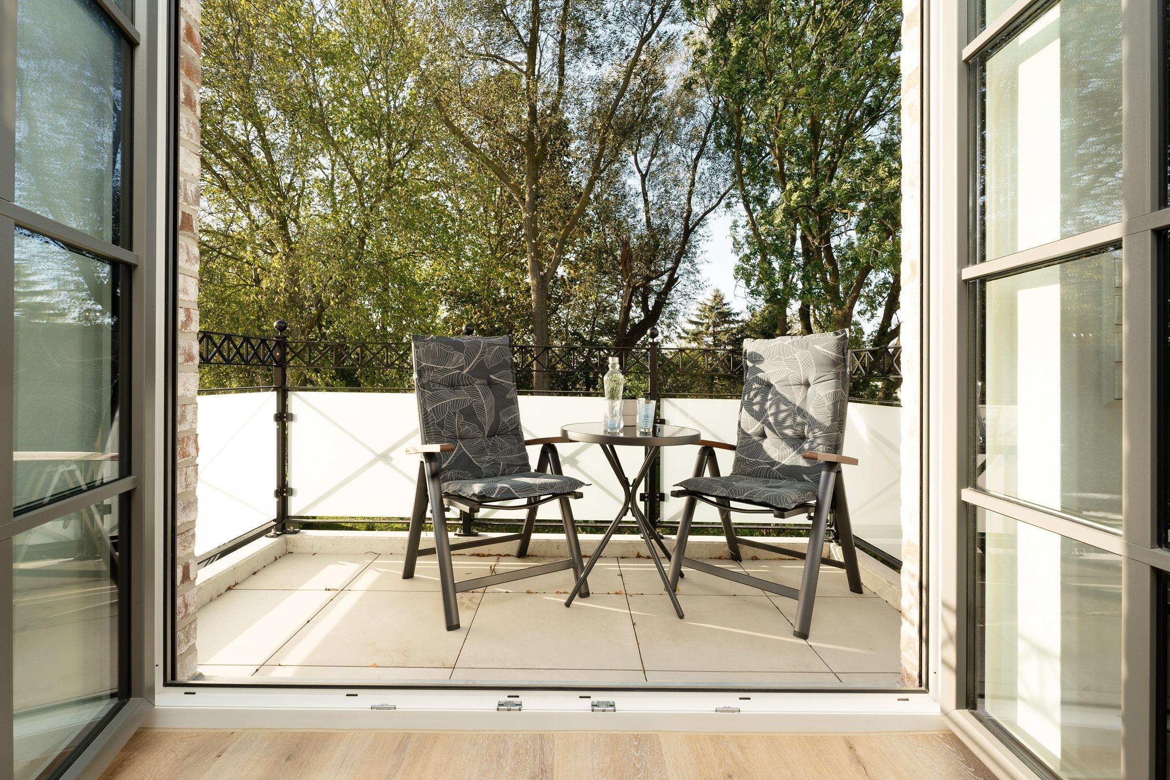 Herzlich willkommen! Ihr stilvolles Zuhause auf Zeit verwöhnt Sie mit einer edlen und gleichzeitig gemütlichen Einrichtung. Machen Sie es sich vor dem TV bequem oder genießen Sie die Sonnenstrahlen auf dem möblierten Südbalkon. Die gute Seeluft macht natürlich hungrig. Die offene, moderne Küche mit Induktionsherd, Mikrowelle und Spülmaschine bietet Ihnen viele Extras, die Sie begeistern werden. Für die Nacht stehen Ihnen ein Schlafzimmer mit einem Doppelbett (2x 90x200 cm) sowie ein Schlafzimmer mit zwei Einzelbetten (je 100x200 cm) zur Verfügung. Verdunkelt wird jeweils mit Außenrollläden. Das tageslichthelle Bad mit bodengleicher Dusche, Handtuchwärmer und Fußbodenheizung lässt keine Wünsche offen, um gut in den neuen Urlaubstag zu starten.