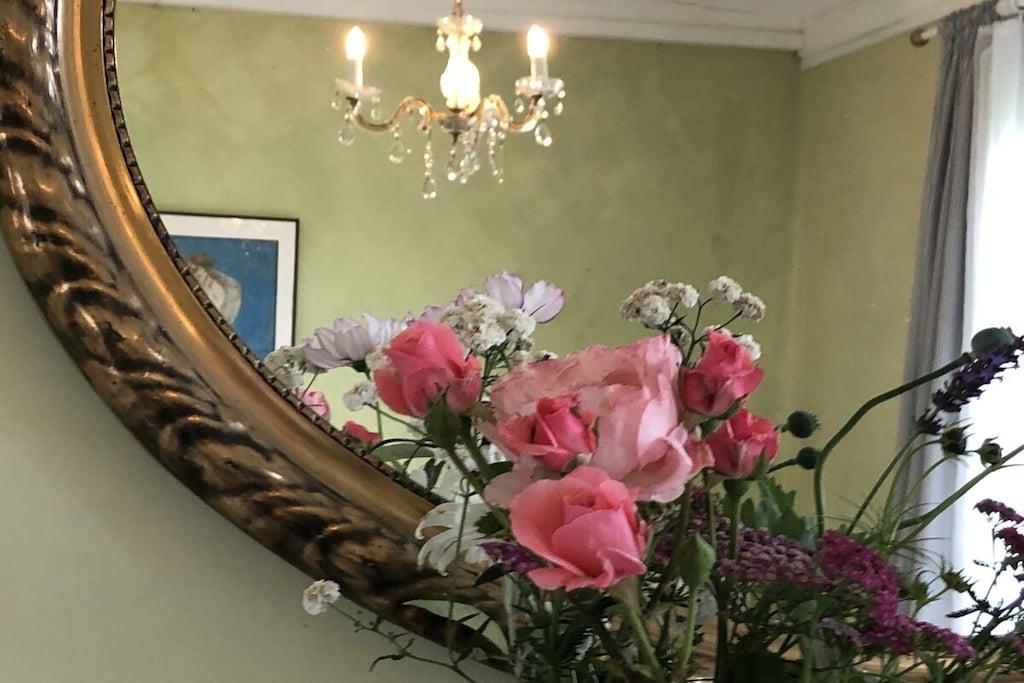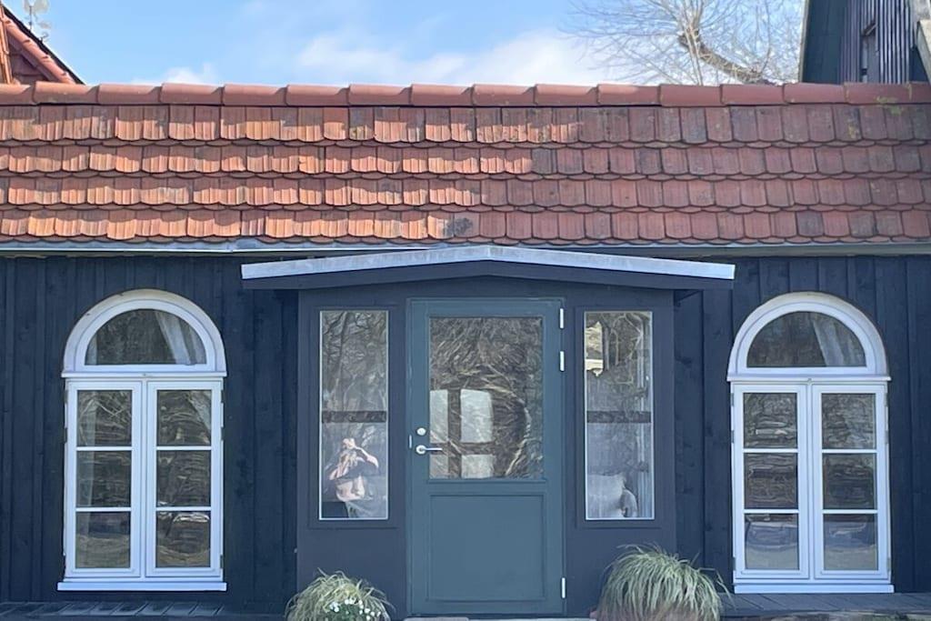 Sommarhus Julin på Jumne gård Semesterhus med lugna färgscheman och direkt tillgång till trädgården. Veranda och två terrasser, lämplig för ensamresenärer, par eller två vuxna med max två barn. Solstolar eller en hängmatta under äppelträd med panoramautsikt.