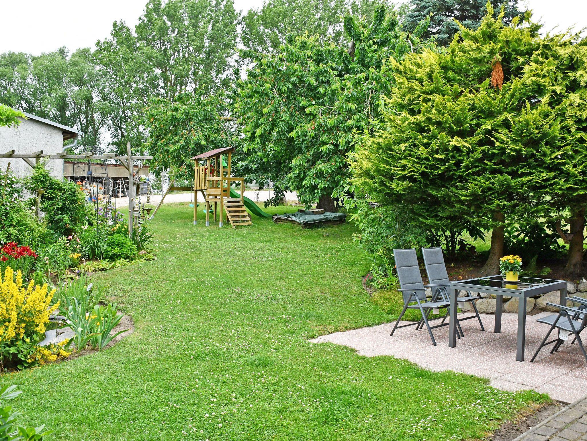 Im Garten können Gäste dieser Ferienwohnung eine schöne Sonnenterrasse mit Gartenmöbeln und Grillmöglichkeit nutzen.