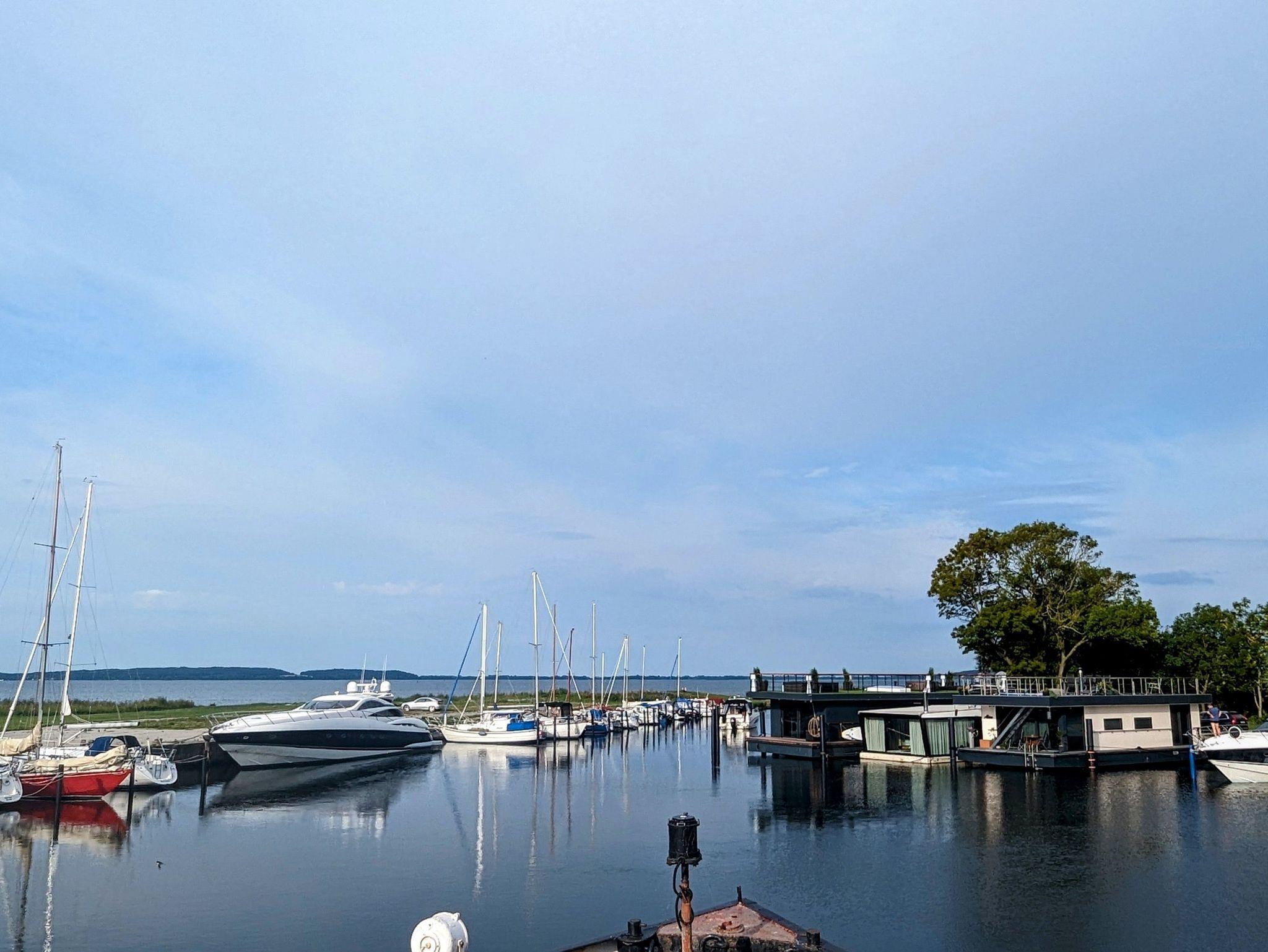 Unser Hausboot, die schwimmende Hafensuite DeLuxe, im Hafenbecken der kleinen Marina Martinshafen gelegen, bietet Luxus pur auf ca. 60 m² Relaxwohnfläche und 2 Außenterrassen auf 2 Etagen. Ein großes Panoramafenster verstärkt den weitläufigen Raumeindruck und eröffnet tolle Blicke auf das Hafengeschehen. Eine kleine Trockensauna, eine Whirlwanne direkt vor dem Doppelbett (140 x 200 cm), ein elektrischer Massagesessel und ein klassischer Kamin sorgen für besondere und persönliche Wellnessmomente an Bord. Eine Essecke mit einer kleinen Küchenzeile bietet Möglichkeiten für eine einfache Selbstversorgung. Hier stehen ein Kühlschrank, eine BEKO-Kaffeemaschine, ein Toaster, ein Wasserkocher und ein Eiswürfelmaker zur Verfügung. Entertainmentinfrastruktur ist mit W-LAN, 2 Smart-TV`s und einer Bose-Homesound-500-Anlager vorhanden. 2 Bäder mit großen bodentiefen Duschen, Waschbecken und WC sowie eine zusätzliche kleine Kajüte mit einer Doppelkoje (140 x 200 cm) runden das Luxusangebot der schwimmenden Hafensuite ab. Eingebettet in das Naturschutzgebiet rund um den Großen Jasmunder Bodden und ideal zentral gelegen im nördlichen Teil der Insel Rügen liegt die Hafenlady in geschützter Lage in der Marina Martinshafen. Lassen Sie den Blick schweifen über die den gesamten Tag glitzernde Wasseroberfläche oder genießen Sie eine Flasche Wein mit Blick auf den Sonnenuntergang am Ende eines ereignisreichen Urlaubstages. Unsere einmalige Urlaubs-Location für Sie liegt fest im Hafen vertaut - bereit für entspannte Stunden und einmalige Urlaubs-Momente. Mehr Urlaub mit und auf dem Wasser geht nicht. Mit viel unberührter Natur, direkt auf dem Wasser und einem kleinen Strandabschnitt direkt am Hafen. Genießen Sie bei uns ganz entspannte Stunden. Oder bei entsprechendem Wetter die sehr guten Voraussetzungen für Kite- oder Wind-Surfen. 2 SuP`s gehören zur Bordausstattung für einen Wasserausflug auf dem Bodden dazu. Auf jeden Fall werden Sie nach unvergesslichen Momenten bei einem Glas Wein mit Blick auf den Sonnenuntergang über dem großen Jasmunder Bodden immer wieder zurückkommen wollen – in die schwimmende Hafensuite De Luxe in der Marina Martinshafen.