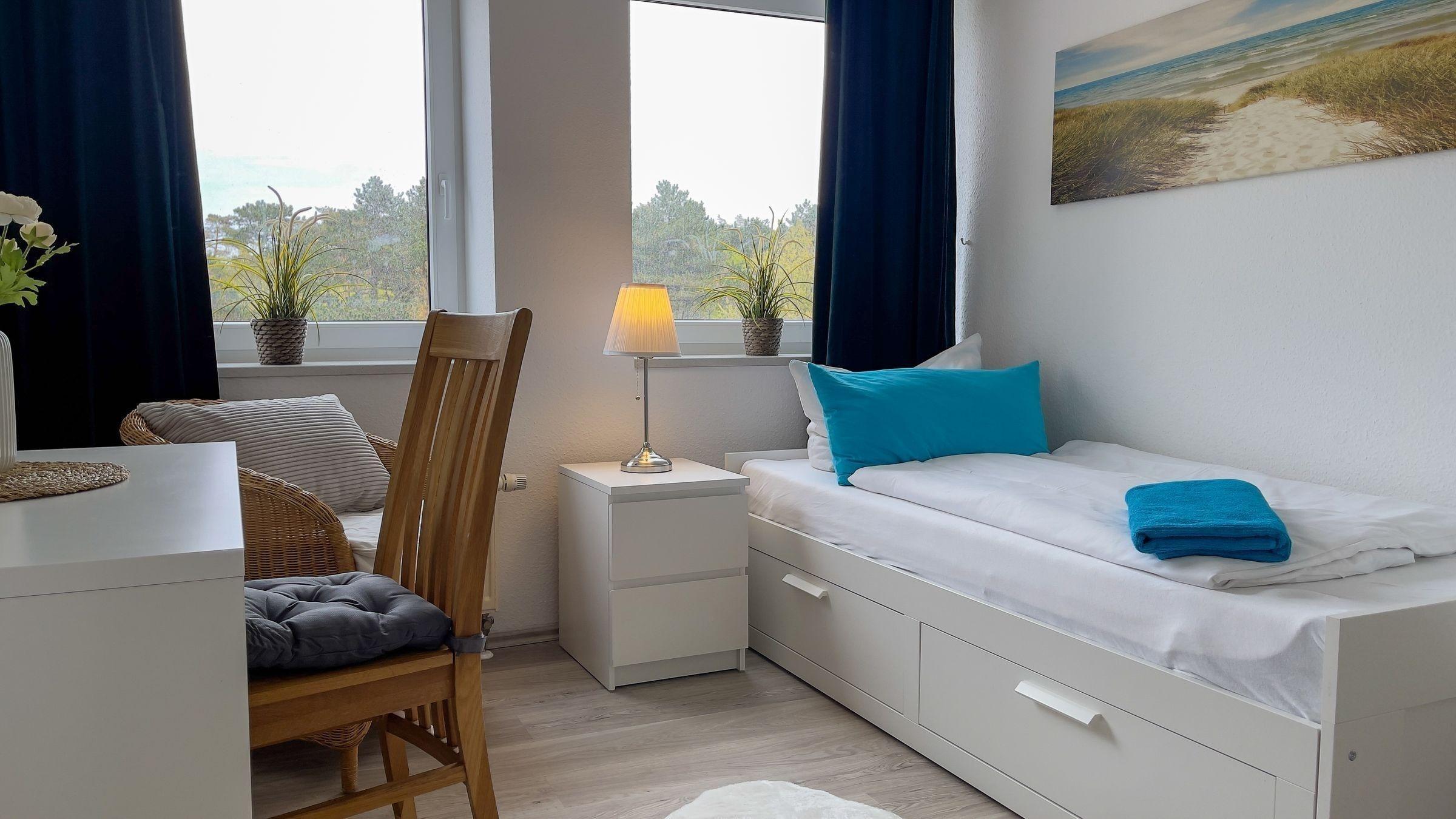 Die Ferienwohnung bietet einen attraktiven Arbeitsplatz, ideal für produktives Arbeiten mit herrlichem Meerblick. Die großzügigen Fenster sorgen für viel Tageslicht und schaffen eine inspirierende Atmosphäre. Darüber hinaus fehlt es an störenden Ablenkungen, was den Fokus auf die Arbeit fördert. Ein perfekter Rückzugsort für Berufstätige und Erholungssuchende.