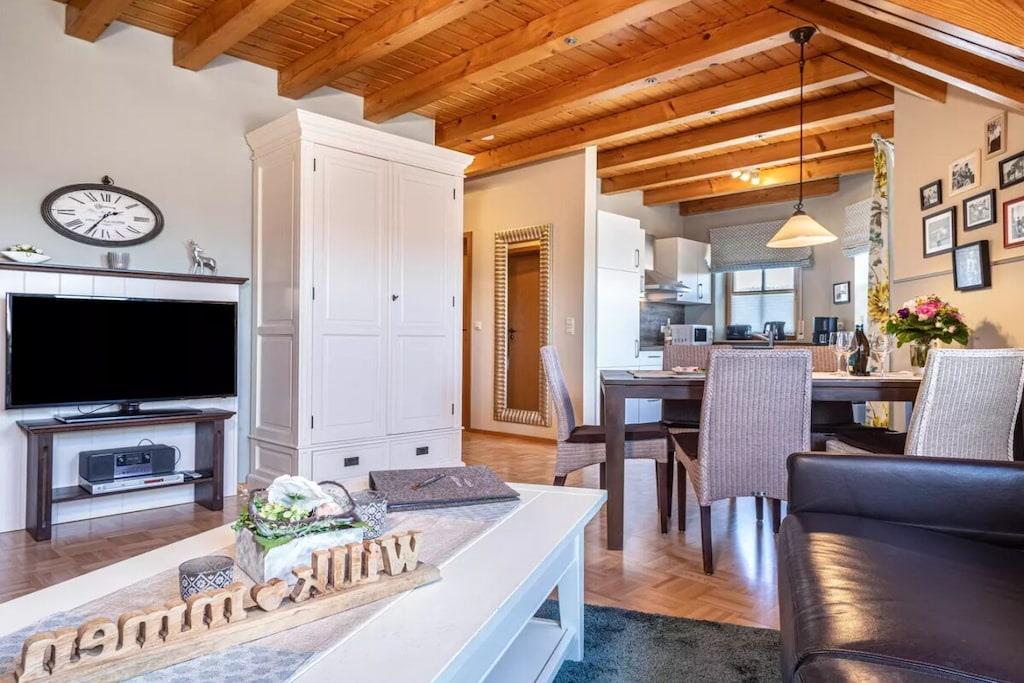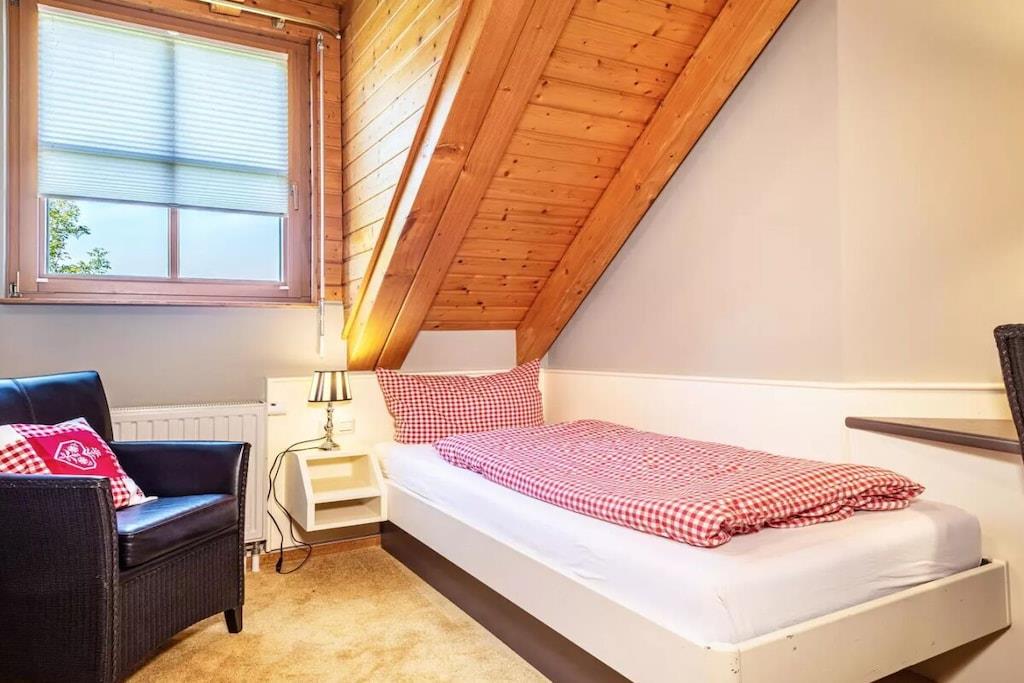 Denna kärleksfullt och bekvämt inredda semesterlägenhet lovar en underbar och avkopplande semester i omedelbar närhet av Bodensjön. Vår nyrenoverade 4-rums semesterlägenhet (vindlägenhet) är utrustad med alla bekvämligheter och har tilldelats fyra stjärnor. Upp till 5 personer kan njuta av sin semester fullt ut i denna 98 m² stora lägenhet. Det tredje sovrummet på vinden nås via en brantare trappa och är endast delvis lämpligt för små barn. Lägenheten har tre separata sovrum, ett nytt kök, ett badrum och en stor balkong i söderläge. Köket med öppen planlösning, som ansluter till matsalen, erbjuder allt du behöver för att spara värdefull semestertid, inklusive ugn, diskmaskin, mikrovågsugn, kaffebryggare, vattenkokare och brödrost. Vindlägenheten är mycket väl lämpad för familjer såväl som äldre personer med normal rörlighet. Gratis Wi-Fi finns tillgängligt.
