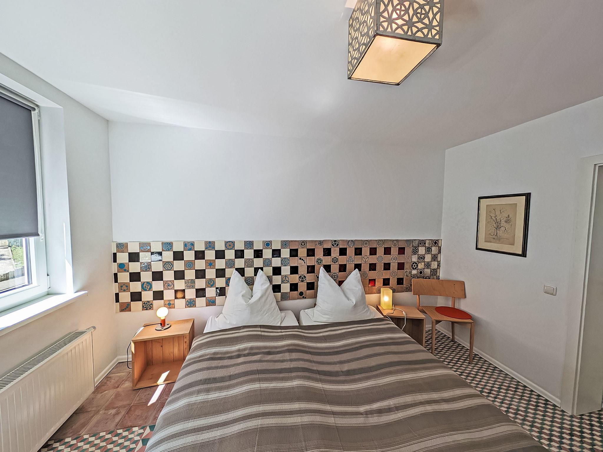 "Wohnung 3", 2-room apartment on the upper floor. Bright, practical furnishings: upper floor: 1 room with 1 double bed (2 x 90 cm, length 200 cm). Small living room with cable TV (flat screen). Kitchen-/living room (2 hot plates, dishwasher, toaster, kettle, electric coffee machine) with dining nook and TV (flat screen). Shower/WC. Heating. Beautiful view of the river. Facilities: Internet (WiFi, free). Please note: non-smokers only. Maximum 1 small pet/ dog allowed. Smoke alarm, fire extinguisher.
