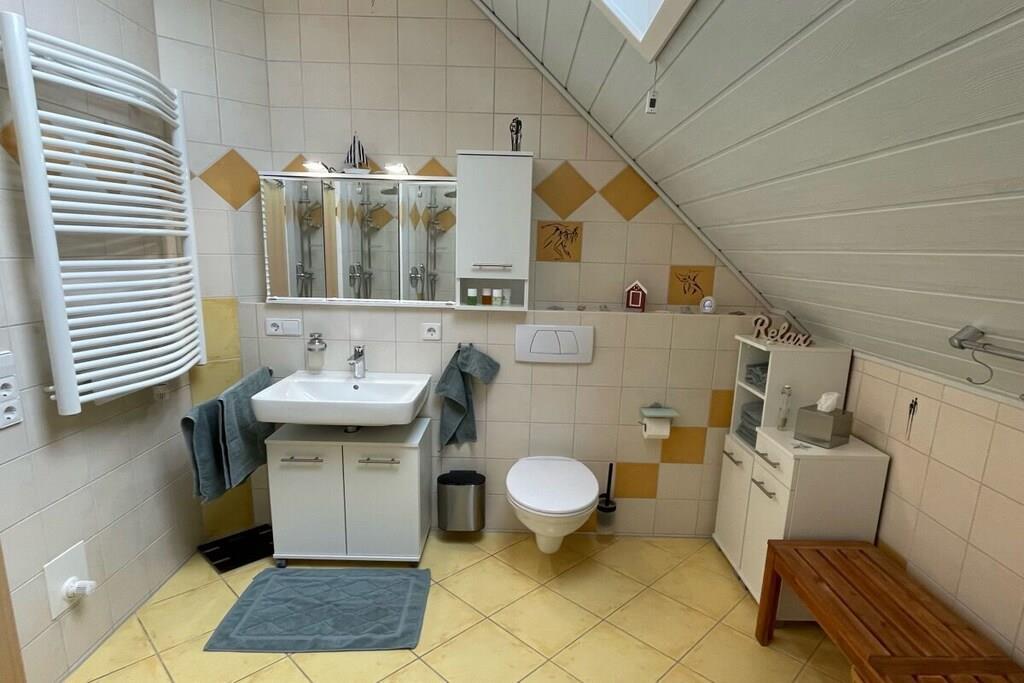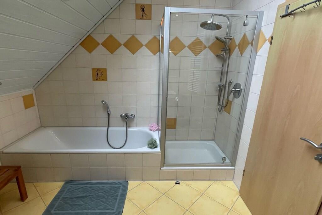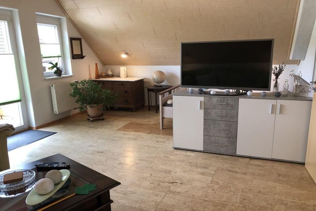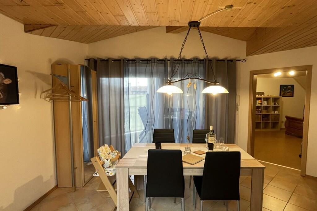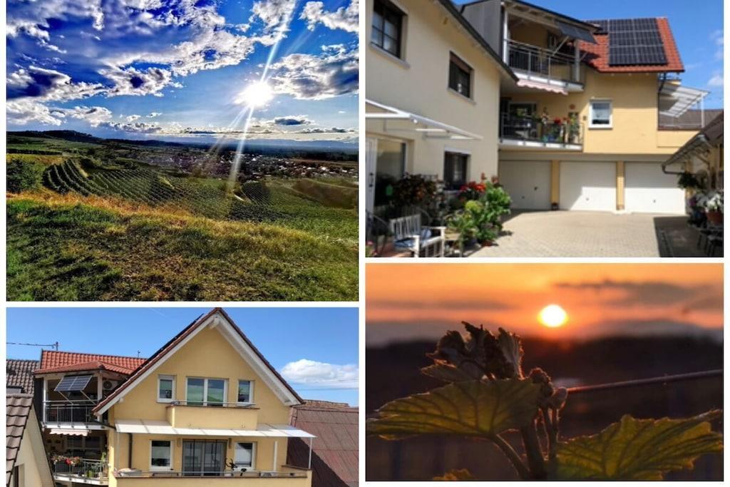 Unsere neu renovierte und liebevoll ausgestattete Ferienwohnung bietet Ihnen auf ca. 80qm Platz für 4 - 5 Personen. Sie schlafen im Schlafzimmer im Doppelbett (Kinderreisebett). Im hellen Wohnzimmer mit Balkon, befindet sich ein Sofa und großes Bett. Beide Zimmer verfügen außerdem über (Sat-)TV. In der sehr gut ausgestatteten Küche stehen ein Ceran-Kochfeld, Backofen, Mikrowelle, Spülmaschine, Kühlschrank, Kaffeemaschine, Senseo Pad-Maschine, Wasserkocher und Toaster zur Verfügung. Der gemütliche Essbereich hat einen direkten Zugang zum großen überdachten und möblierten Balkon mit Blick auf die Weinberge. Bei starkem Sonnenschein schützt eine zusätzliche Seitenmarkise. Im großen, hellen Badezimmer sind Waschbecken, WC, Dusche und auch eine Badewanne vorhanden. Ladestation Wallbox für E-Autos in der Garage! Bitte melden Sie sich wenn möglich zuerst telefonisch bei uns, bevor Sie eine verbindliche Anfrage stellen, Dankeschön.