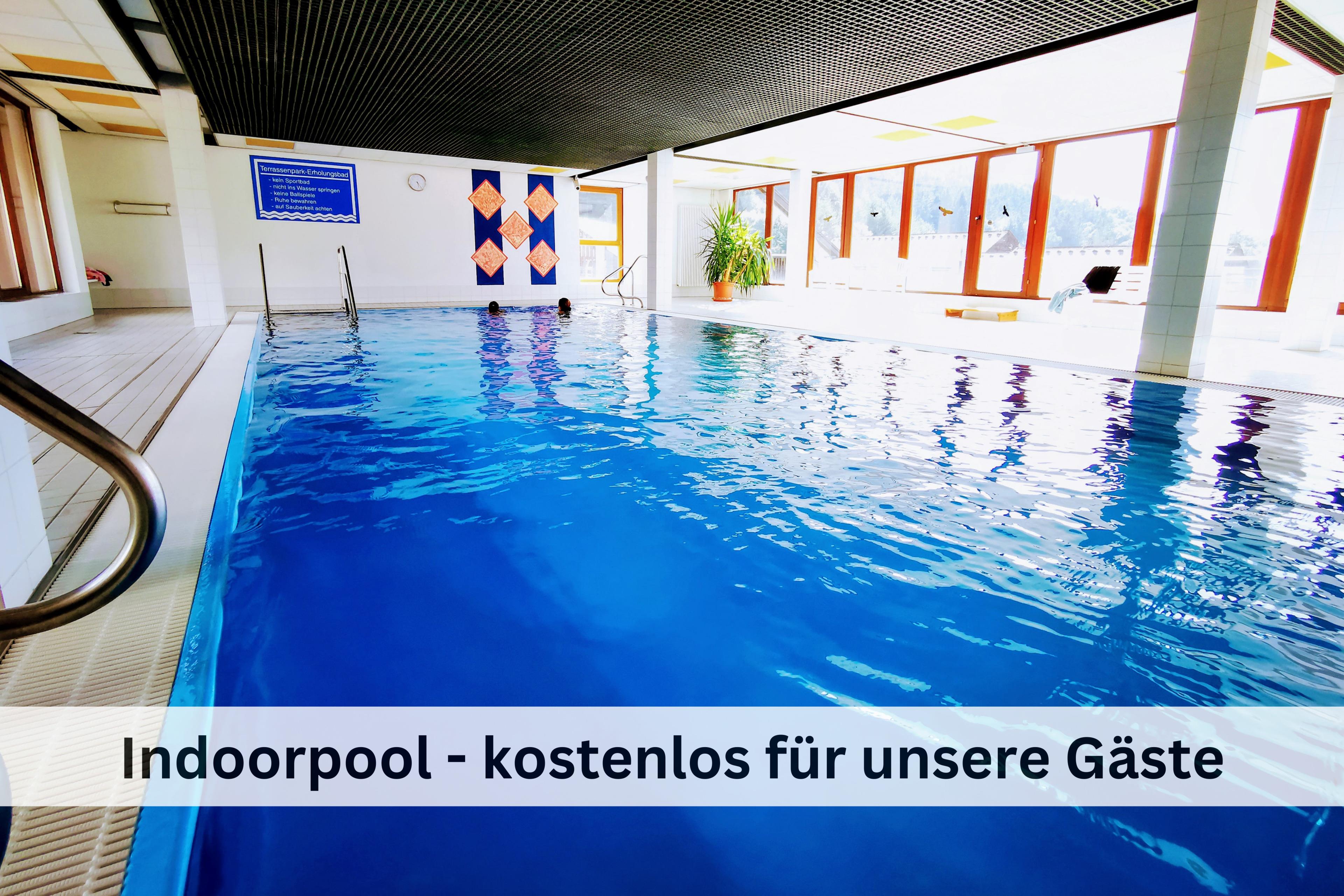 ?? Indoor-Pool (kostenfrei) im Hauptgebäude der Ferienanlage. Öffnungszeiten: Mo. - So. 9:30 Uhr - 21:00 Uhr, Do. 12:00 - 21:00 Uhr