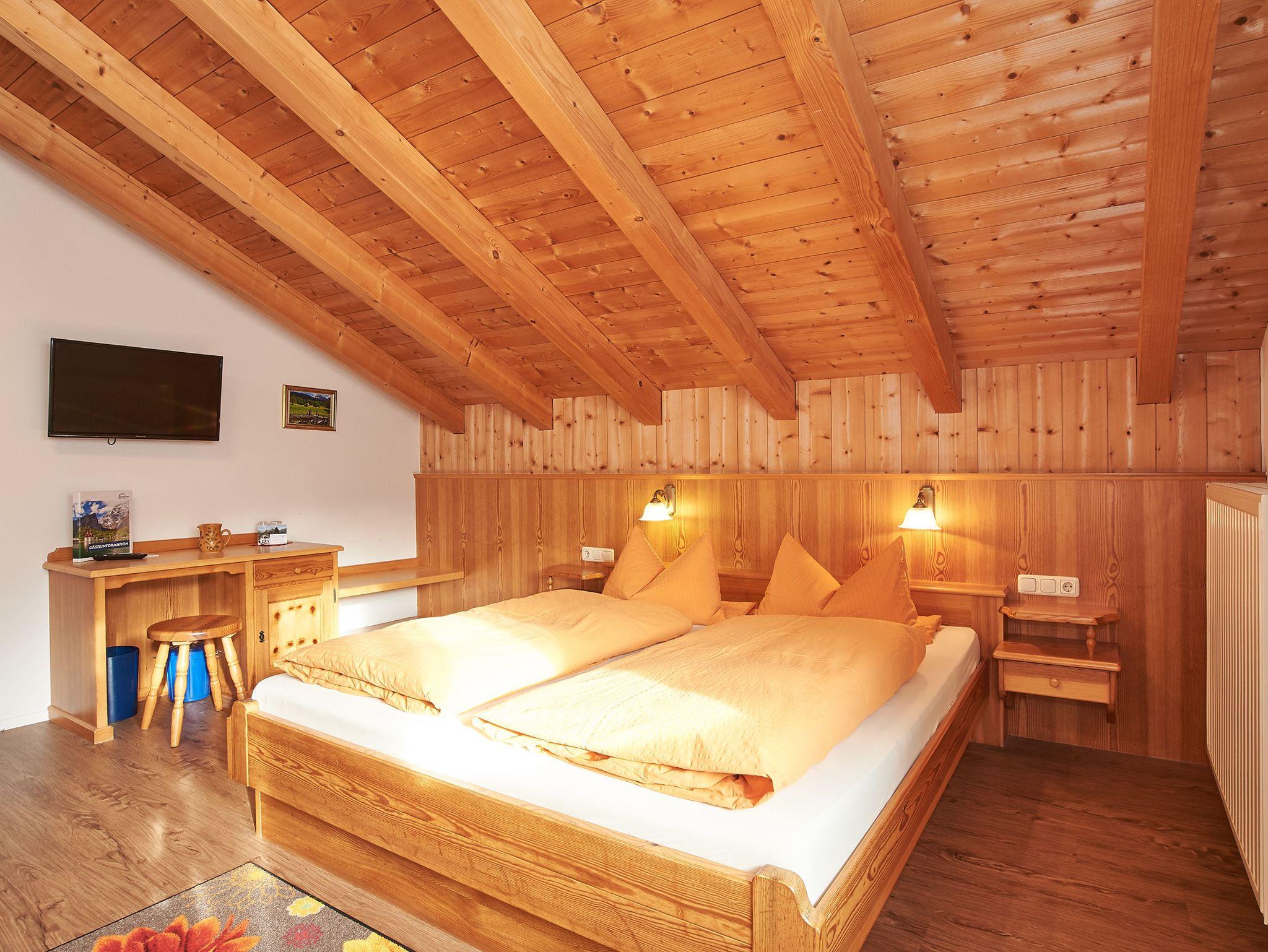 Das gemütlich eingerichtete Nichtraucher-Doppelzimmer liegt im Dachgeschoß und ist ca. 30 qm groß. Es ist ausgestattet mit Dusche/WC, Fön, Toilettenartikel, Schreibtisch, Flachbildfernseher mit Kabel TV, Tisch und 2 gemütlichen Fernsehsessel. Auf dem möblierten Balkon genießen Sie die Ruhe.