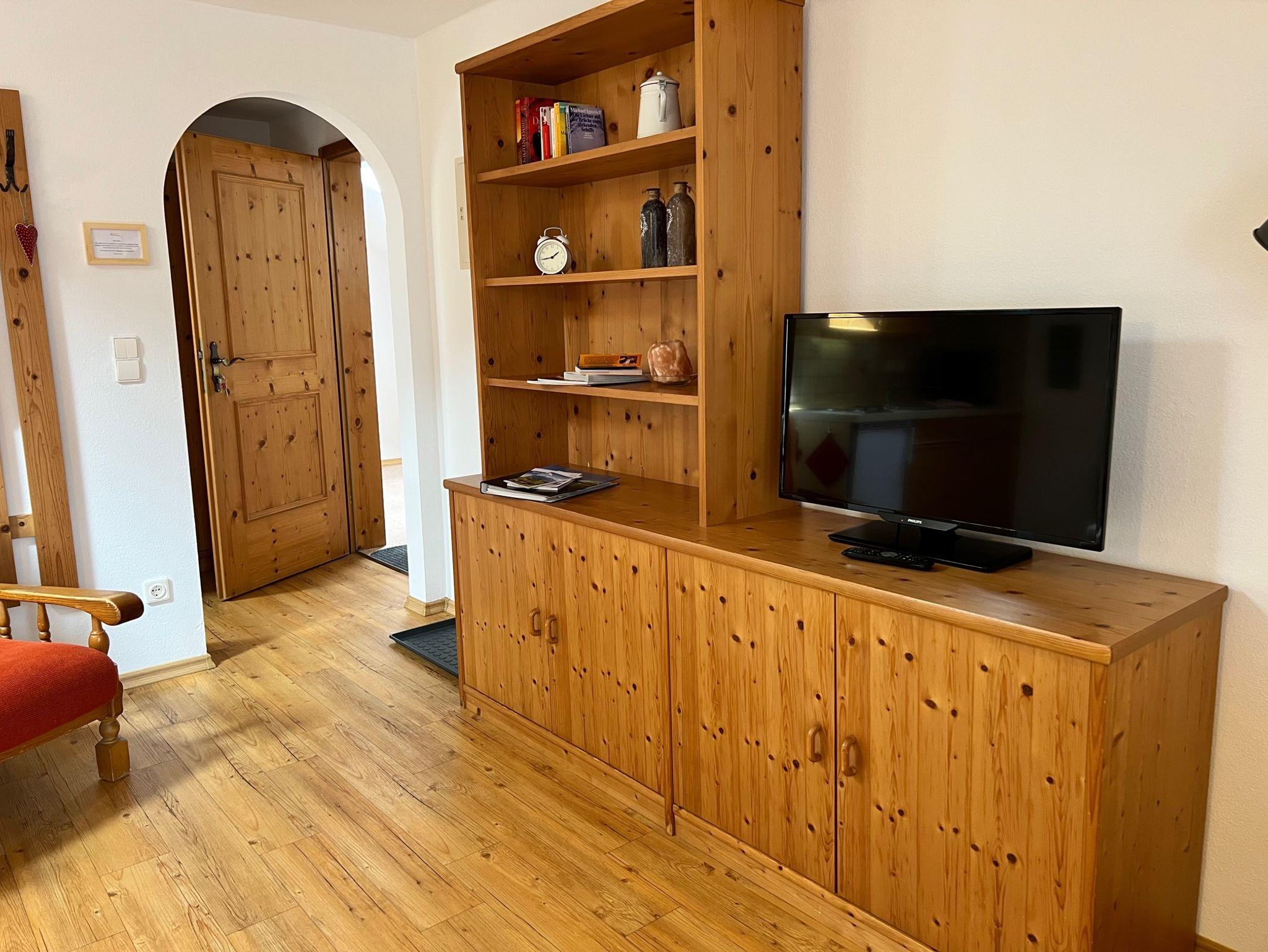 Die komfortable Nichtraucher-Ferienwohnung bietet Platz auf 33 qm und liegt im Dachgeschoß. Der kombinierte Wohn-Schlafraum ist ausgestattet mit einem Doppelbett, 2 Sesseln, Essbereich mit Eckbank, einer komplett eingerichteten kleinen Küchenzeile und Bad mit Badewanne/WC. Radio, TV und WLAN stehen ebenso zur Verfügung wie ein möblierter Süd-Balkon. In der Wohnung ist aufgrund der Größe nur 1 Hund als Begleitung erlaubt.
