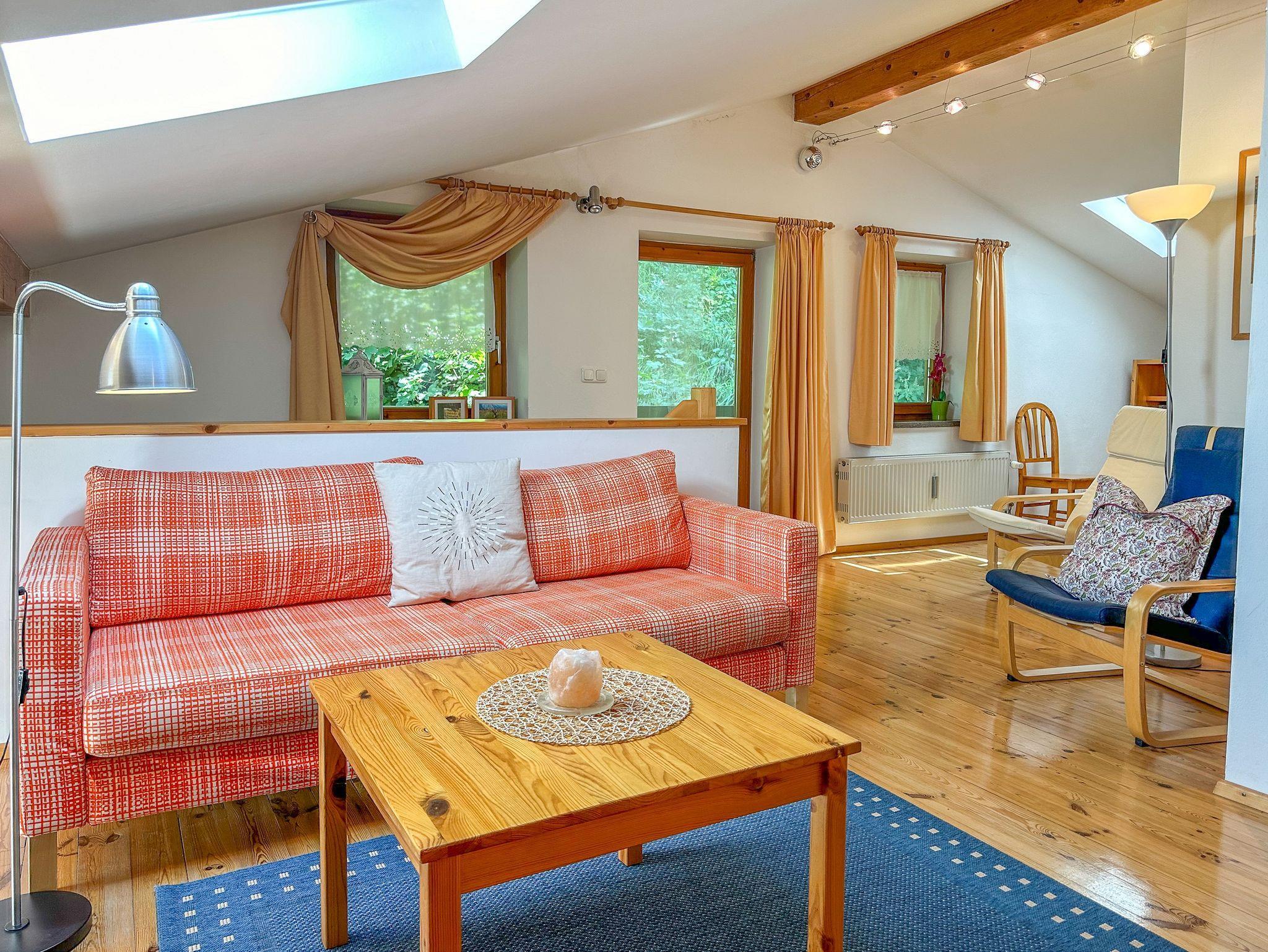 Beide Ebenen sind mit einer breiten und stabilen Holztreppe im Innern verbunden. Nichtraucherwohnung, Bettwäsche, Handtücher, Geschirrtücher und Tischwäsche inklusiv. Kostenloser Parkplatz direkt am Haus. Kostenloses Gäste-WLAN. Keine Haustiere möglich.