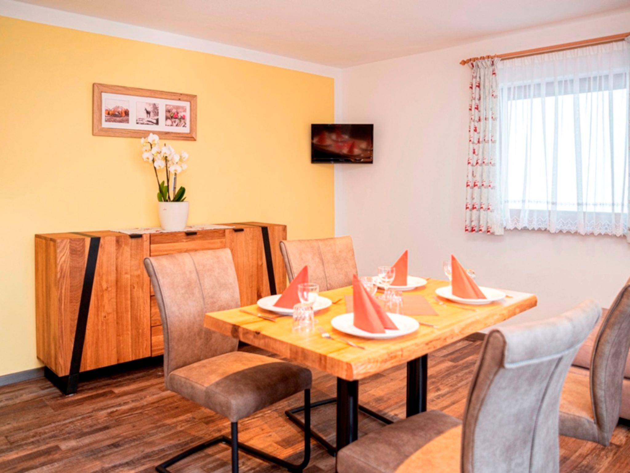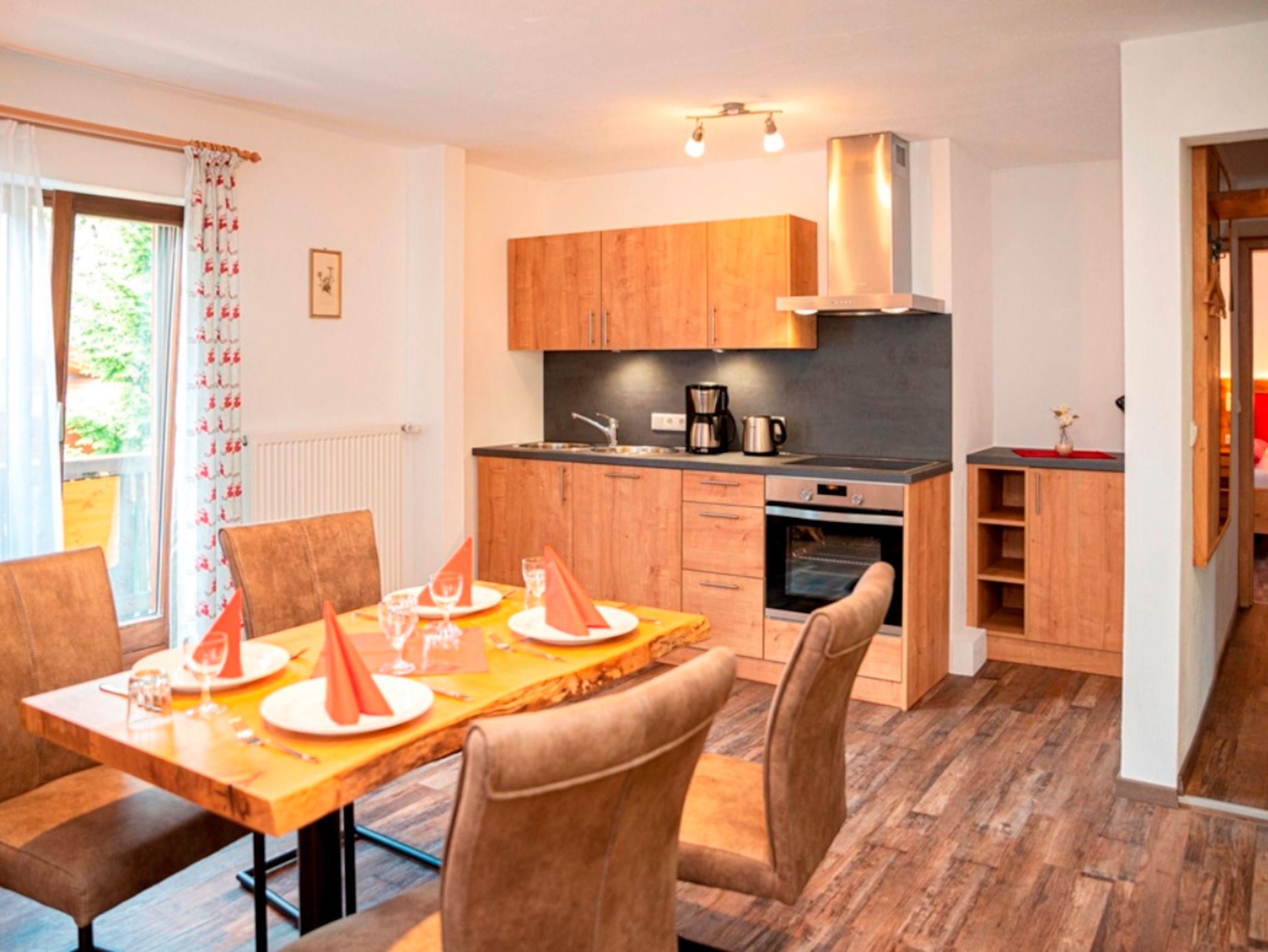 Ca. 40 qm, getrennten Wohn/Schlafraum, Bad mit Dusche/WC, Balkon mit Bergblick, Küchhenzeile mit Kochutensilien, Backofen, Kochplatte, Kühlschrank, Kaffeemaschine, Wasserkocher und Geschirrspüler, 2 Flachbild TV, Radio, Esstisch. Auf Wunsch Frühstück und Halbpension im Haus, Bettwäsche und Handtücher, kostenfreies WLAN. Waschmaschine und Wäschetrockner können gegen Gebühr benutzt werden.
