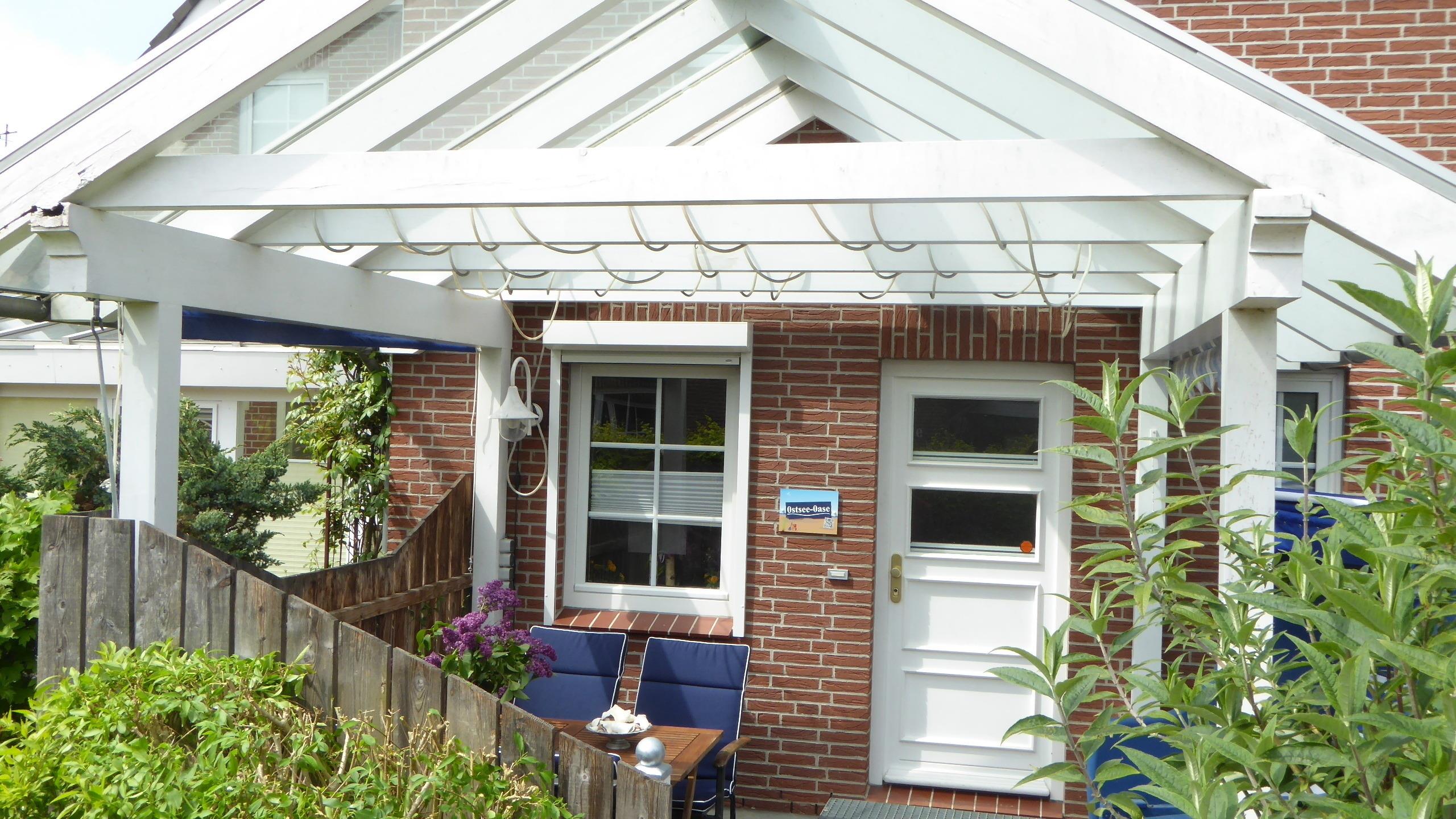 Die "Ostsee-Oase" verfügt über einen separaten Eingang, eine sonnige, mit Glas überdachte Terrasse mit Strandkorb und Grill sowie einen kleinen Garten. Im Zentrum der 46m² großen Wohnung liegt der Wohn-/Essbereich mit Küchenzeile, Frühstückstisch, Sofa und Fernseher. Das Schlafzimmer (12,8m²) mit hochwertigem Boxspring-Doppelbett bietet neben einem großen Kleiderschrank auch einen kleinen Schreibtisch. Außerdem steht ein weiteres Gästezimmer mit Bett zur Verfügung, sodass bei Bedarf auch getrennt geschlafen werden kann.