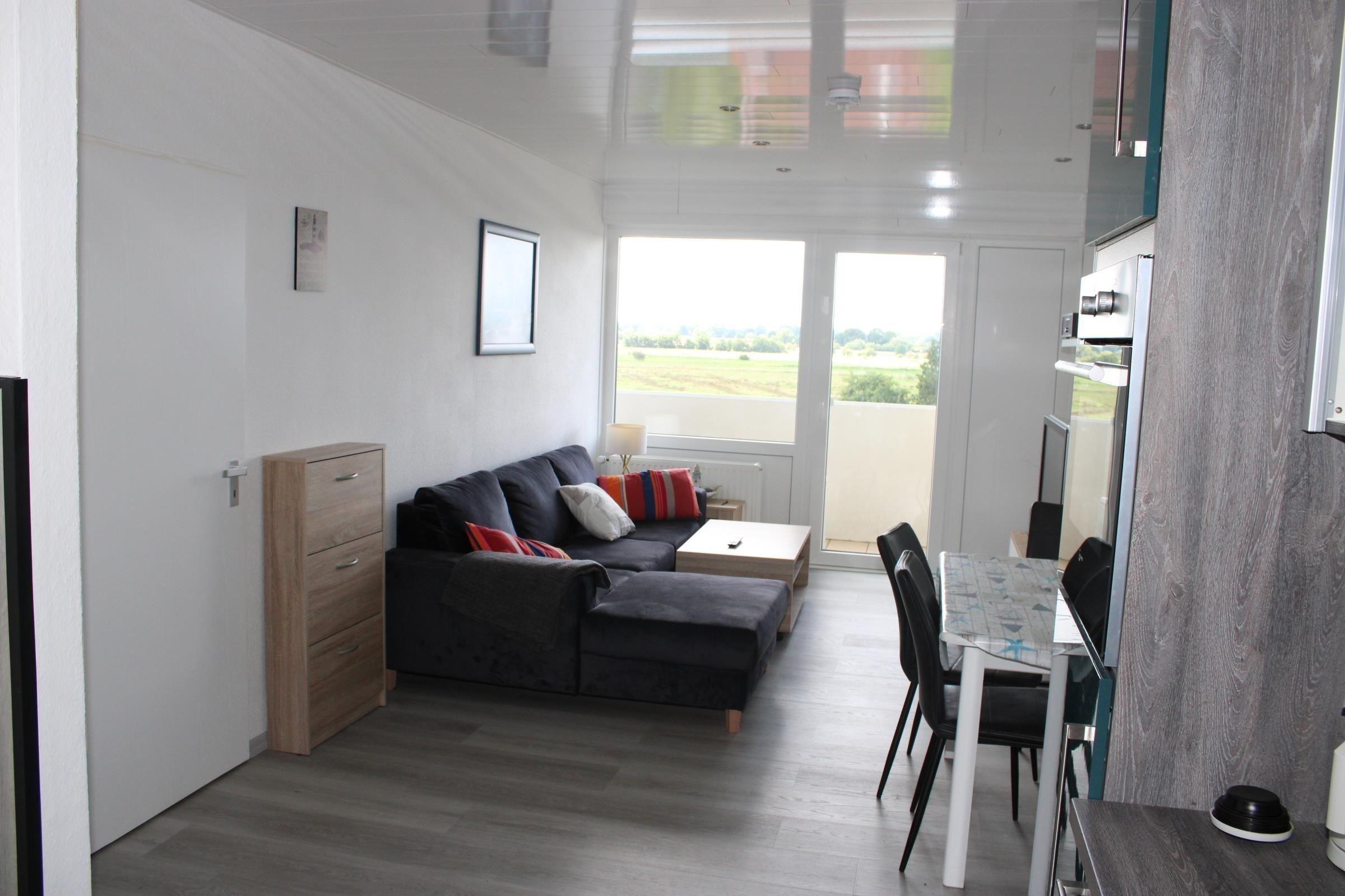 Die Küche ist ausgestattet mit einem 4-Platten-Kochfeld, Mikrowelle, Kaffeemaschine, Wasserkocher und Kühlschrank. Das Bad ist mit Dusche ausgestattet. Die Gartenmöbel auf dem Balkon laden zum Entspannen in der Abendsonne ein.