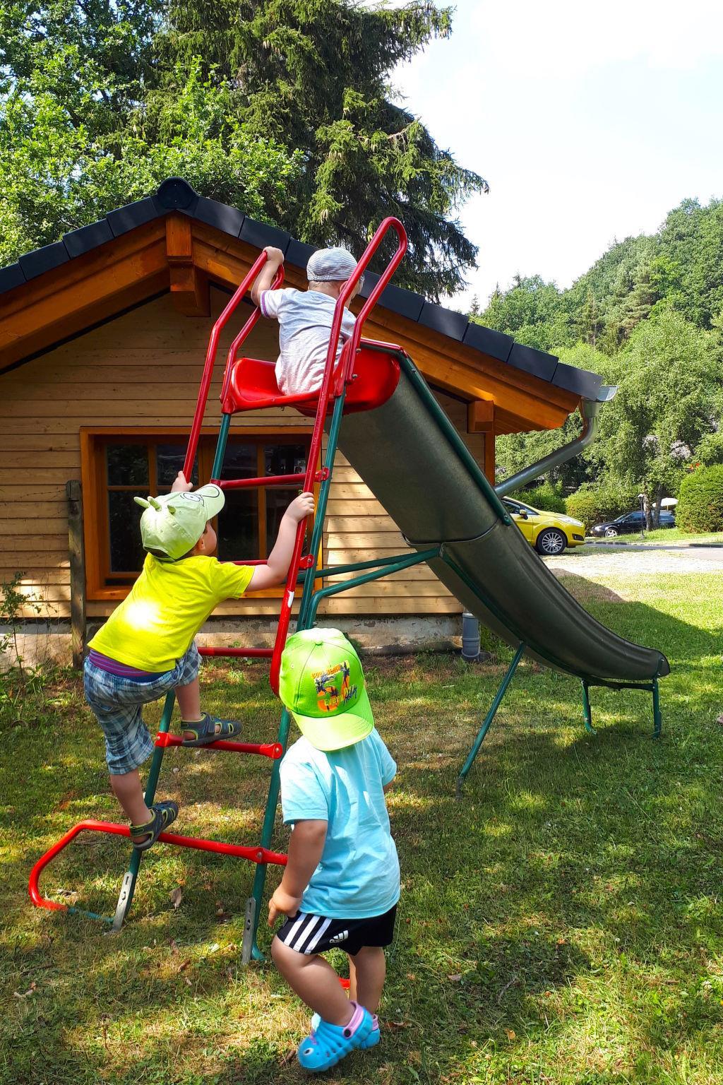 Small, rustic holiday village "Reinskopf", surrounded by trees and meadows. On the outskirts, 900 m from the centre of Schönecken, in a quiet position on top of a hill, 20 m from the edge of the forest, 25 km from the lake, 20 m from the stream. For shared use: park 1 ha, lawn for sunbathing 400 m2, pond. Table tennis, volleyball, patio (30 m2), barbecue, children's playground (slide, swing, sandbox). In the complex: reception, central heating system, washing machine (extra), tumble dryer (for shared use, extra). Parking at the house. Central parking spaces. Grocery 1 km, supermarket 1 km, shopping centre 10 km, restaurant 750 m, bar 10 km, bakery 1.2 km, café 1.2 km, bicycle rental 10 km, bus stop "Schönecken" 1.5 km, outdoor swimming pool 11 km, indoor swimming pool 11 km, bathing lake 20 km. Golf course (18 hole) 14 km, tennis 10 km, riding stable 10 km, walking paths from the house 20 m, cycle lane 5 km, slopes 12 km. Nearby attractions: Burgruine Clara Costa, Schönecker Schweiz, Altburgtal. Well-known lakes can easily be reached: Vulkanmaare 25 km. Please note: car recommended. The photograph shows a typical example. The photo is just an example. All houses/apartments are individually designed/furnished. The holiday village consists of eight holiday homes, each with two apartments. There is also a playhouse for small children that can be shared (free of charge).