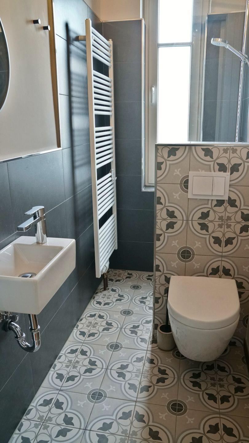 Gehen wir nun weiter ins Haus: Links von der Küche abgehend kommen Sie über den kleinen Flur zum Gäste-WC mit Dusche. Es wäre wunderbar, wenn Sie die Fliesen, Glas- und Fußbodenflächen in der Dusche mit den bereitgestellten Abstreifern nach dem Duschen trockenlegen. Vom kleinen Flur geht auch die Tür zum Bad mit Wanne und zum Durchgang ins Schlafzimmer.