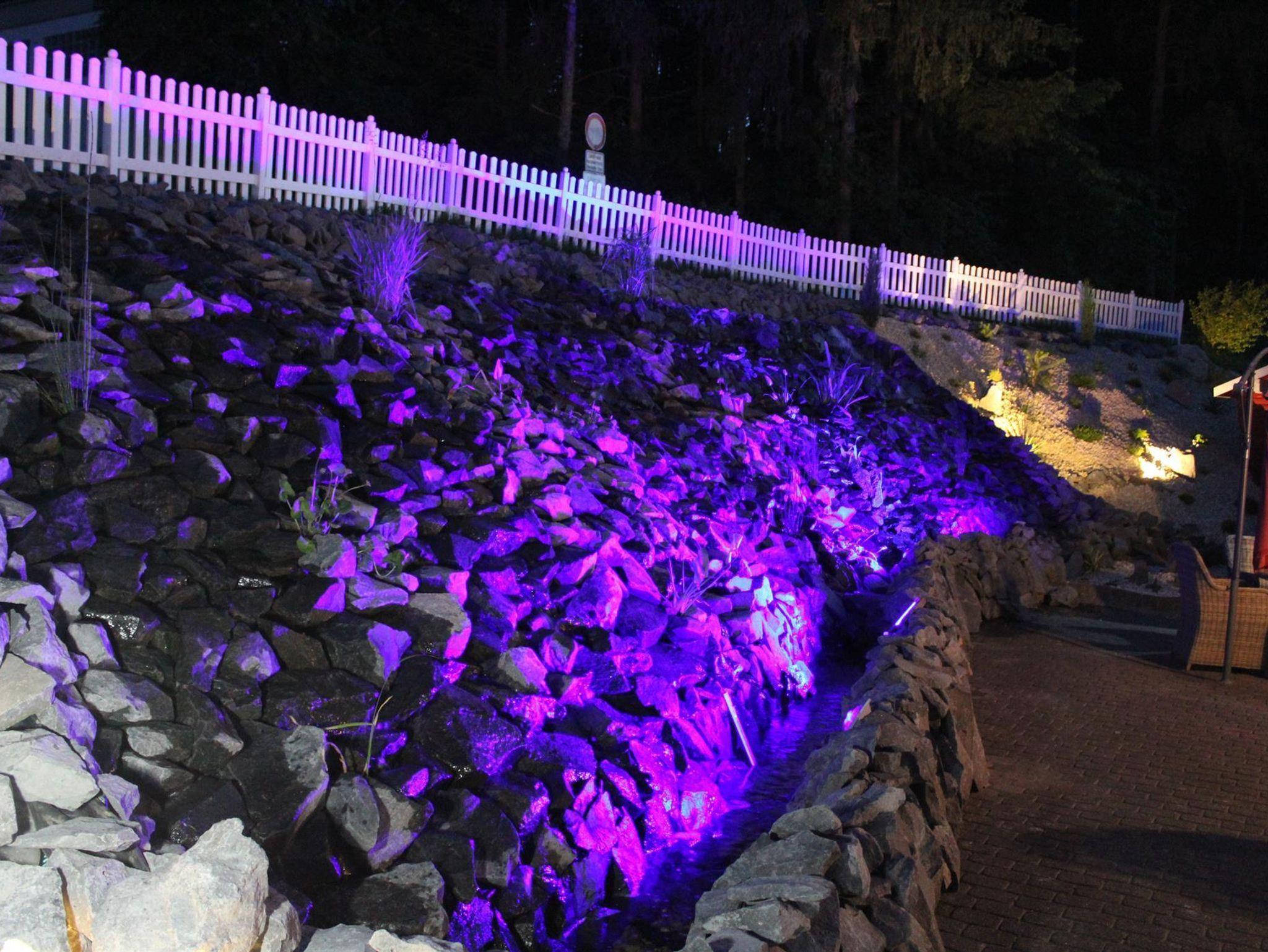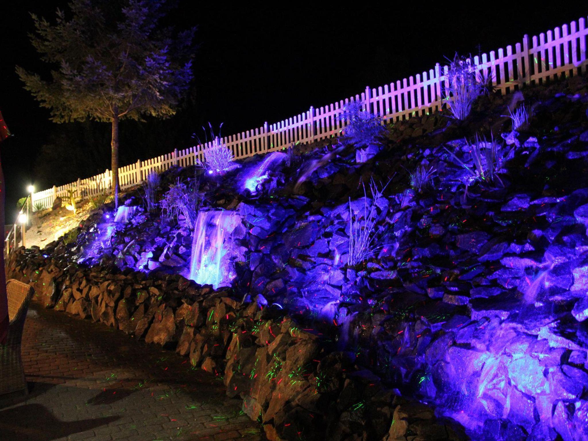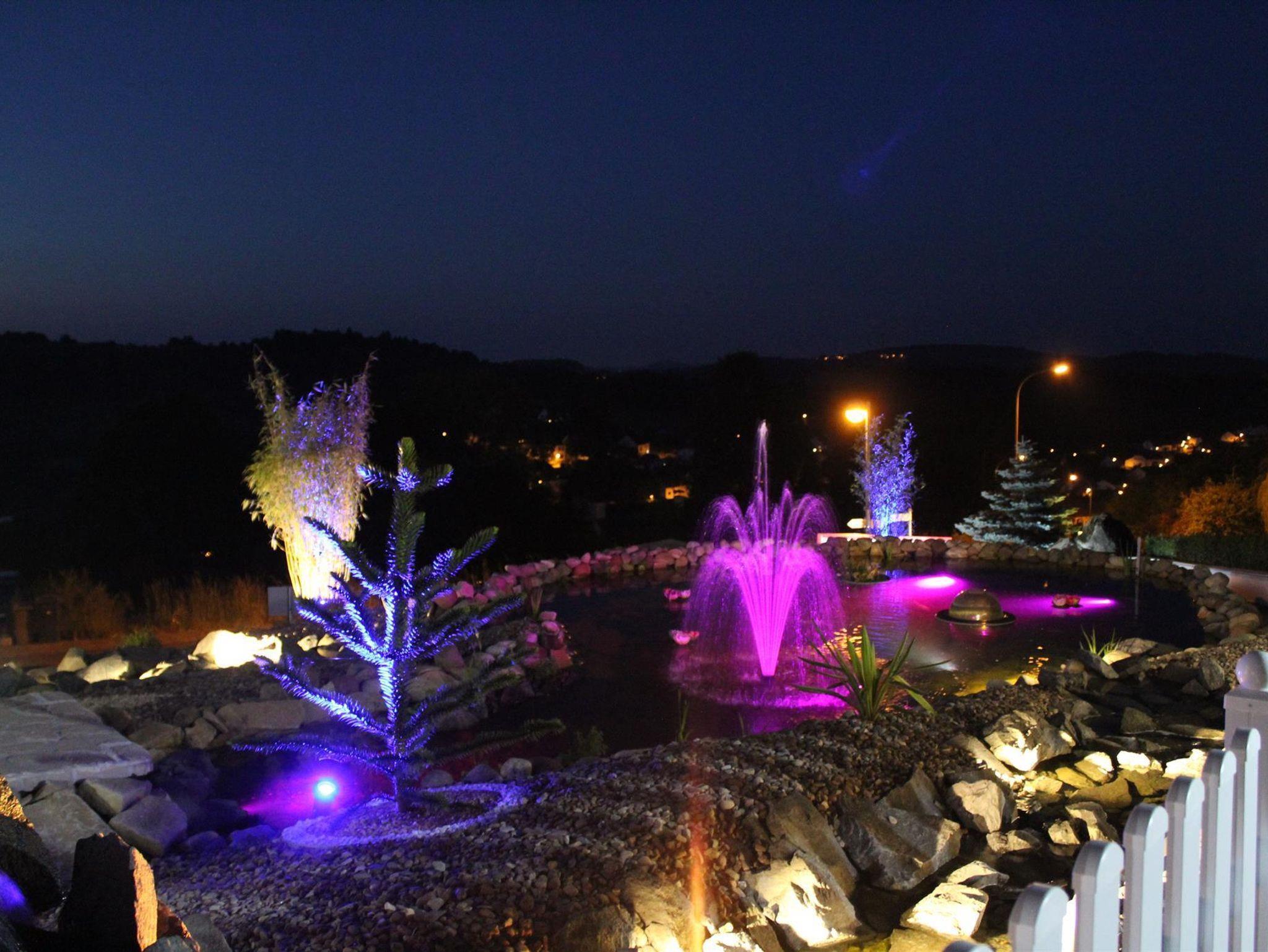 Zwei wundervoll und aufwendig angelegte Zierteiche mit Kois und anderen Fischen, 2 Wasserfälle, 2 Bachläufe und eine gepflegte Zierkiesanlage gehören zur Anlage. Die Aussenanlagen sind abends romantisch angestrahlt. In den Teichen befinden sich auch Schildkröten. Sitzen Sie gemütlich bei einem Kaffee oder einem Cocktail auf dem Balkon oder der Terrasse und schauen Sie den Fischen und den Schildkröten zu. Oder blicken Sie ins Tal auf den See.