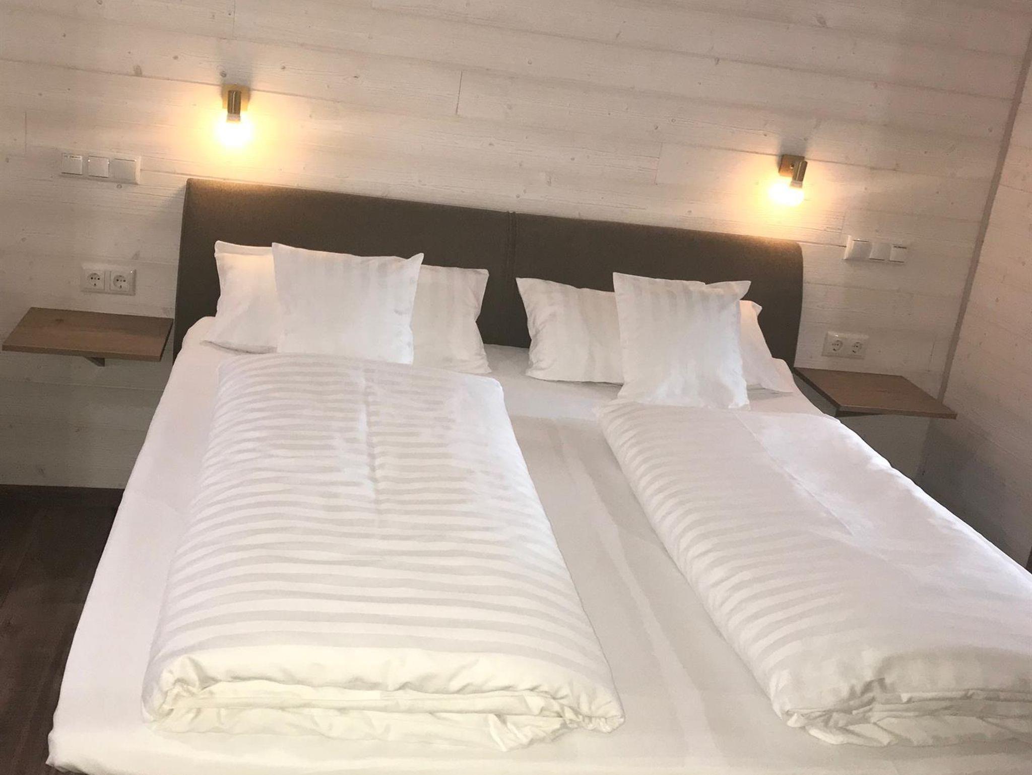 Zwei neu erbaute Appartements mit jeweils zwei geschmackvoll eingerichteten, separaten Schlafzimmern, Küche und Wohnbereich sowie 2x Bad mit Dusche/WC.