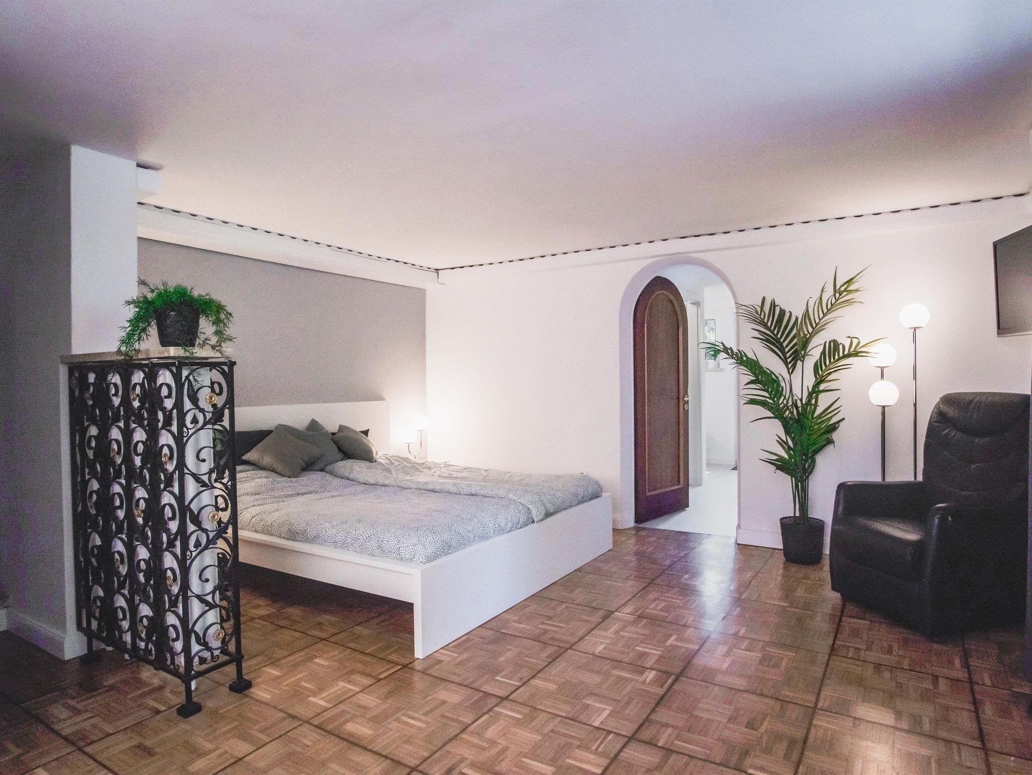 Appartement mit Wohn-Schlafraum in ruhiger Wohnlage. Großer Garten mit Gartenmöbeln und reetgedecktem Gartenhaus.