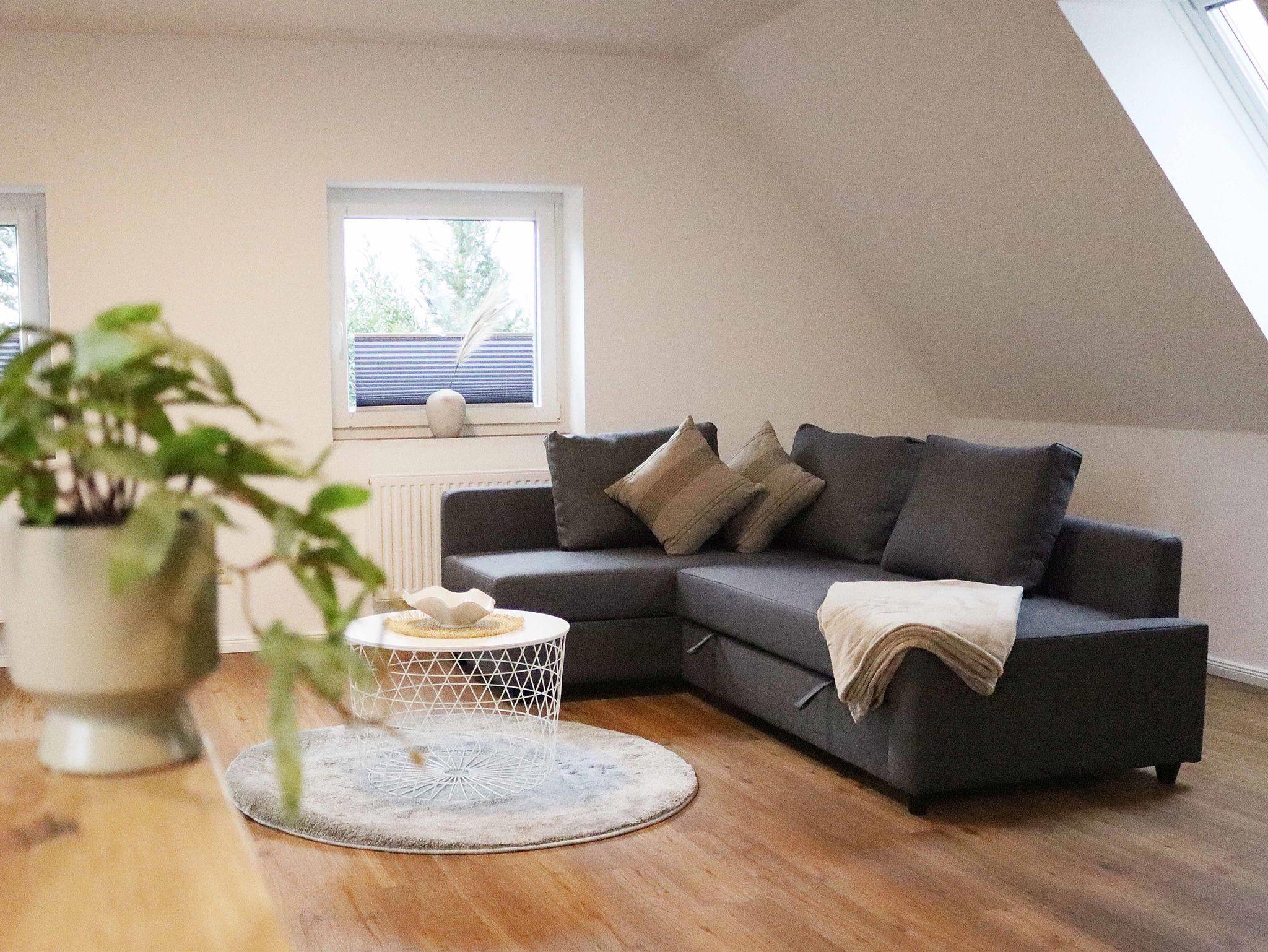 Die hell und modern eingerichtete Ferienwohnung liegt in der ersten Etage und eignet sich für bis zu 6 Personen.