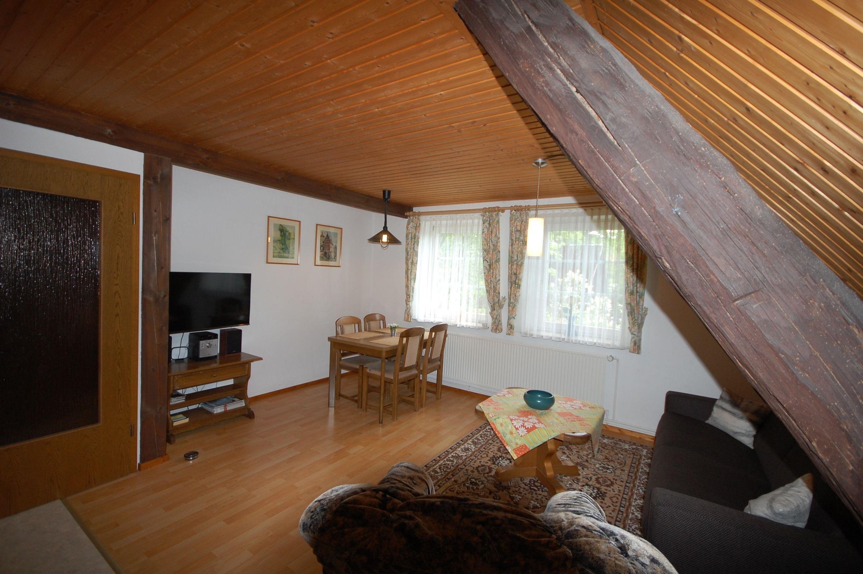 Die Ferienwohnung ist 50qm groß, hell und liebevoll eingerichtet. Der Wohnbereich hat eine gemütliche Couch zum Entspannen sowie ein komfortable Essecke für die gemeinsamen Mahlzeiten.
