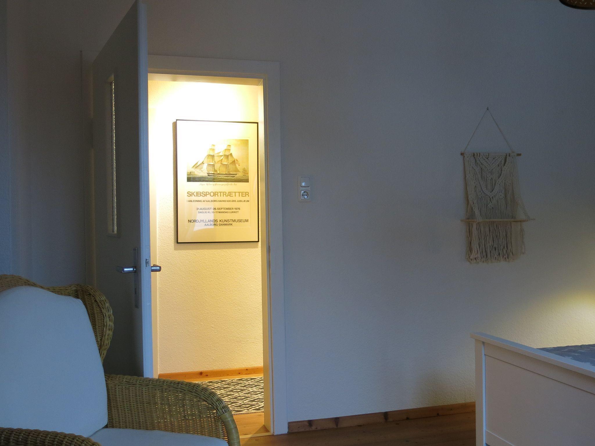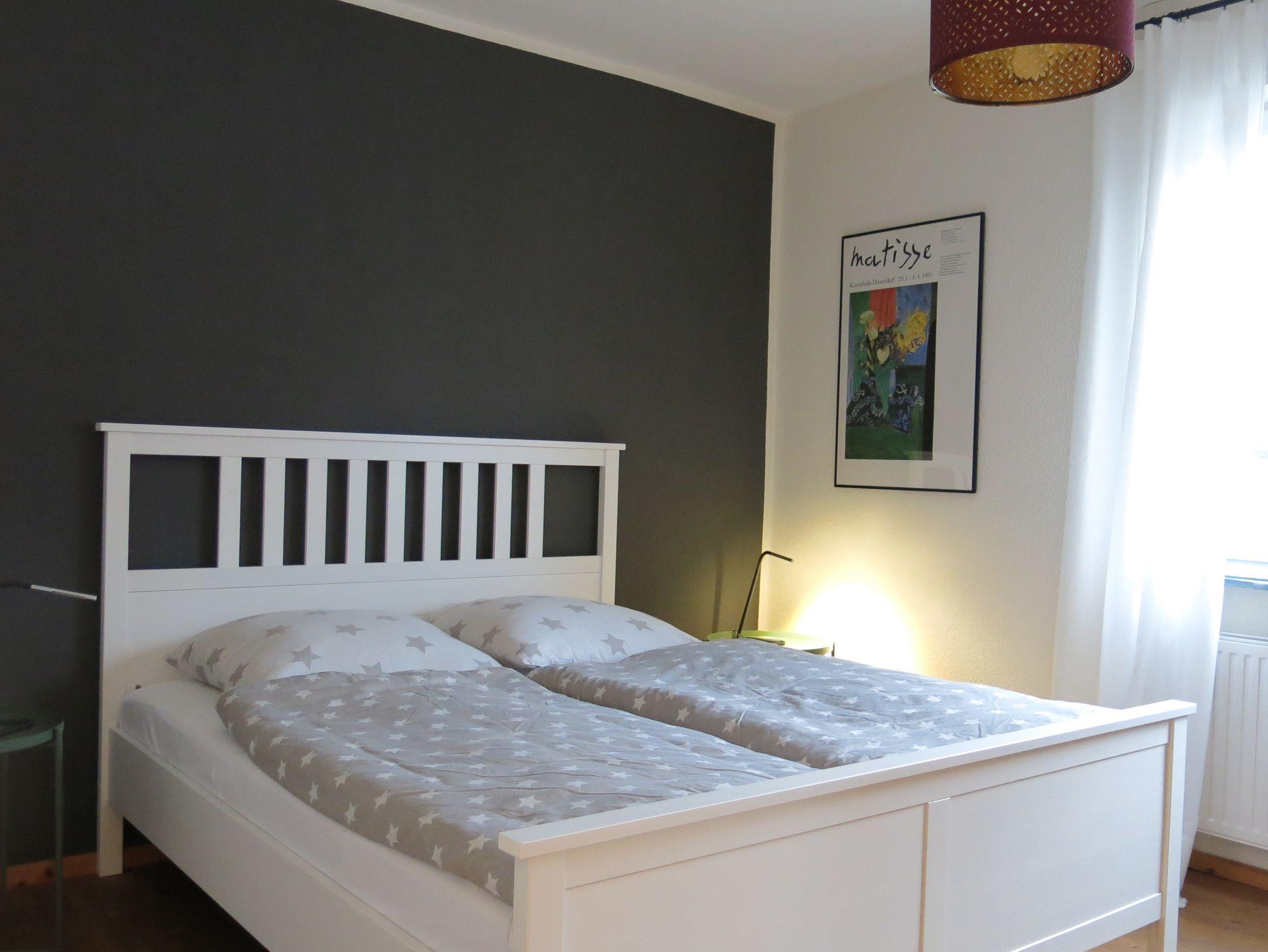 Die ruhige, freundliche Wohnung im Obergeschoss ist zum Garten hin ausgerichtet. Die Ferienwohnung verfügt über einen Flur und einen kleinen Garderobenraum. Im Schlafzimmer befindet sich ein großes Doppelbett. Das Wohnzimmer mit dem Schlafsofa, welches 140 cm breit ist, lädt zum Verweilen ein. Die moderne, neue Einbauküche ist mit Cerankochfeld, Spülmaschine und Mikrowelle ausgestattet. Das Badezimmer mit Badewanne und WC rundet das Gesamtbild ab. Auf einer Wohnfläche von 48qm finden bis zu 3 Personen Platz.