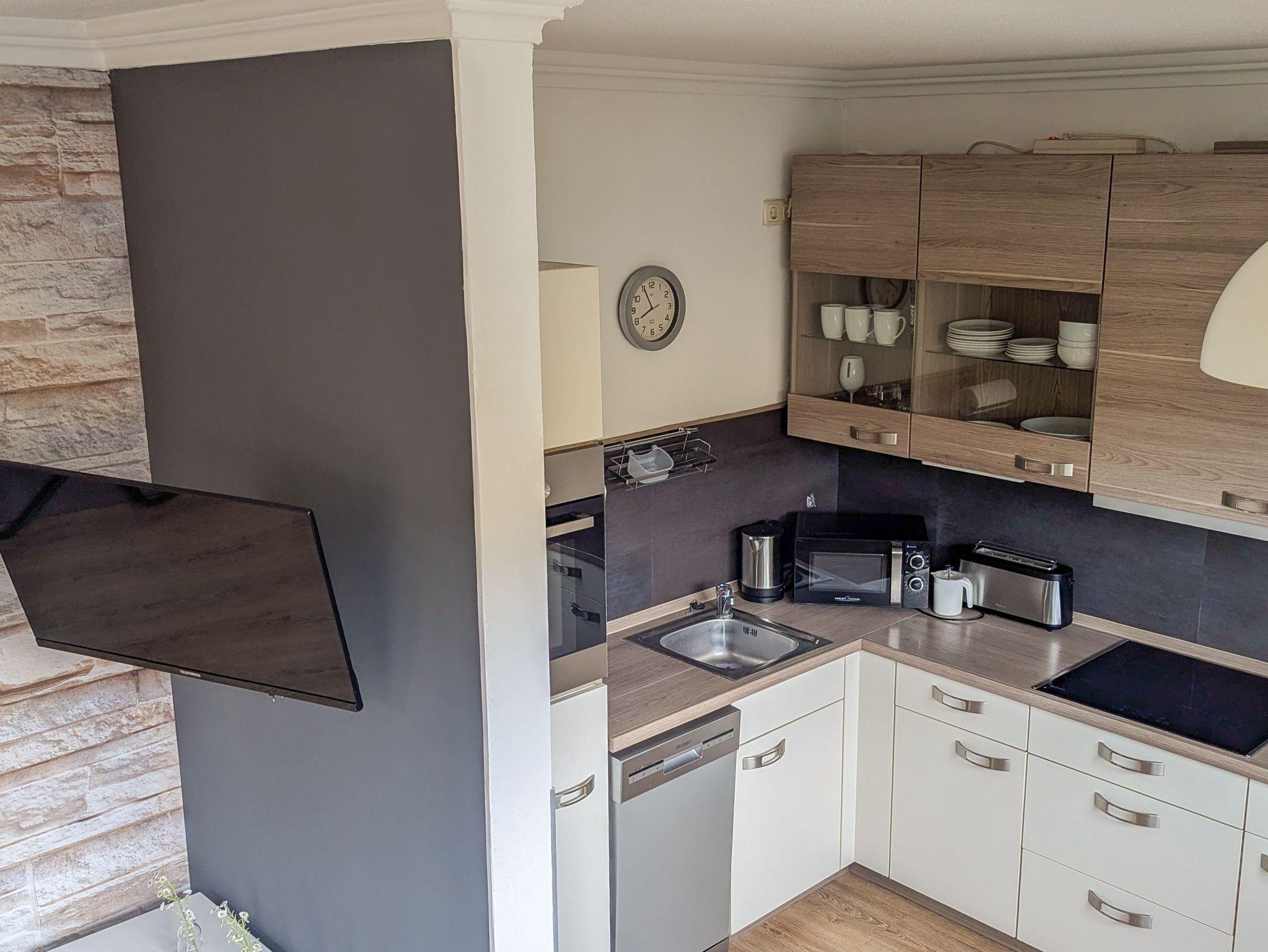 Das Ferienhaus Sande bietet auf 55 m² gemütlichen Raum für bis zu vier Personen. Im hellen Wohnzimmer kannst du es dir auf dem bequemen Schlafsofa (140x200) gemütlich machen und den Tag mit einem Film am TV ausklingen lassen. Die offene Küche ist direkt in den Wohnbereich integriert und gut ausgestattet mit Herd, Backofen, Kühlschrank, Spülmaschine, Mikrowelle, Wasserkocher und Toaster ist alles da, um dich auch im Urlaub unkompliziert selbst zu versorgen. Von hier aus gelangst du direkt auf die überdachte Terrasse mit Blick in den Garten. Im separaten Schlafzimmer erwartet dich ein Doppelbett (140x200) sowie ein Kleiderschrank für deine Urlaubsgarderobe. Das Badezimmer ist modern gestaltet und verfügt neben einem WC und einer Dusche auch über eine Badewanne - ideal zum Entspannen nach einem erlebnisreichen Tag.