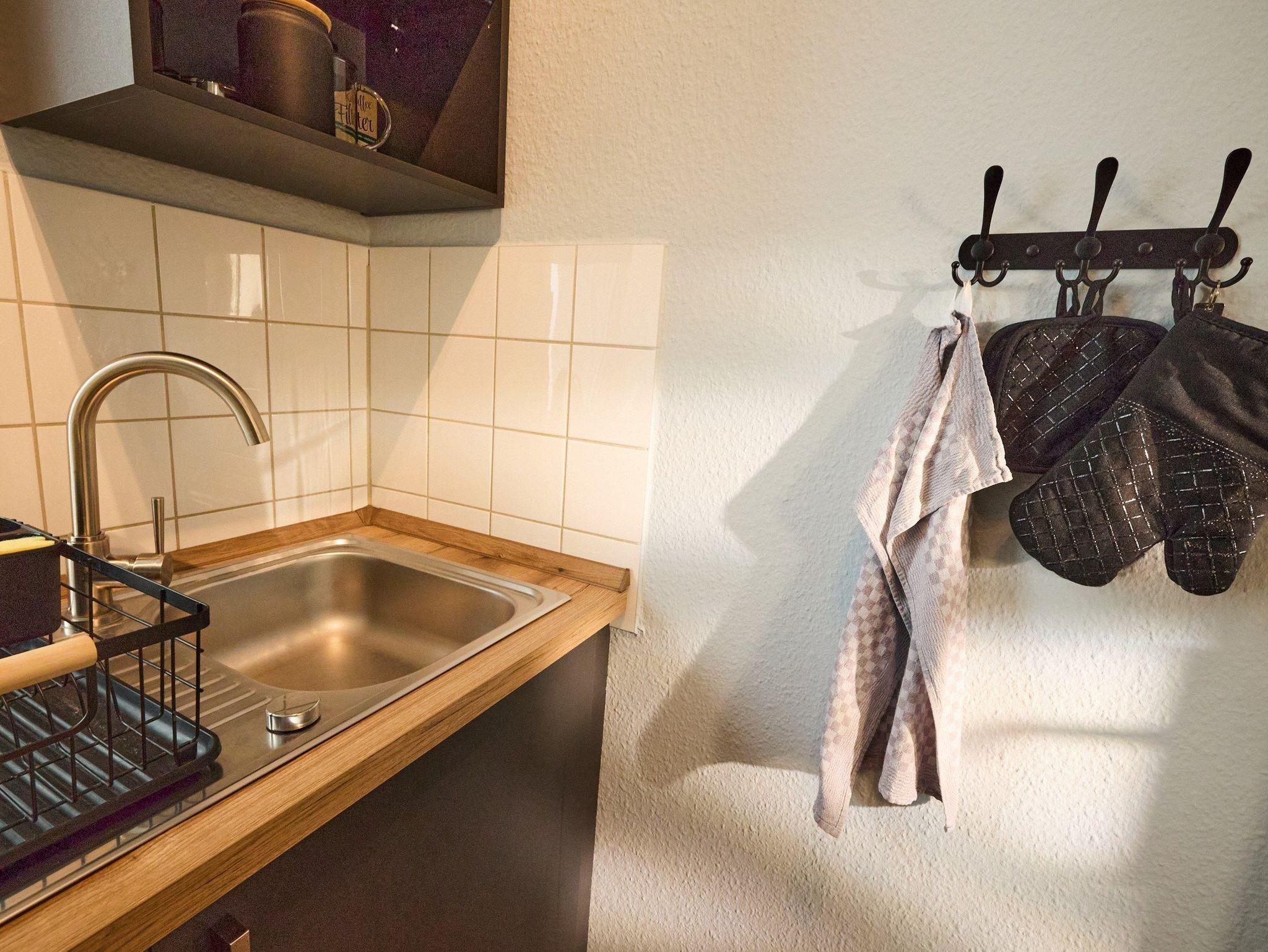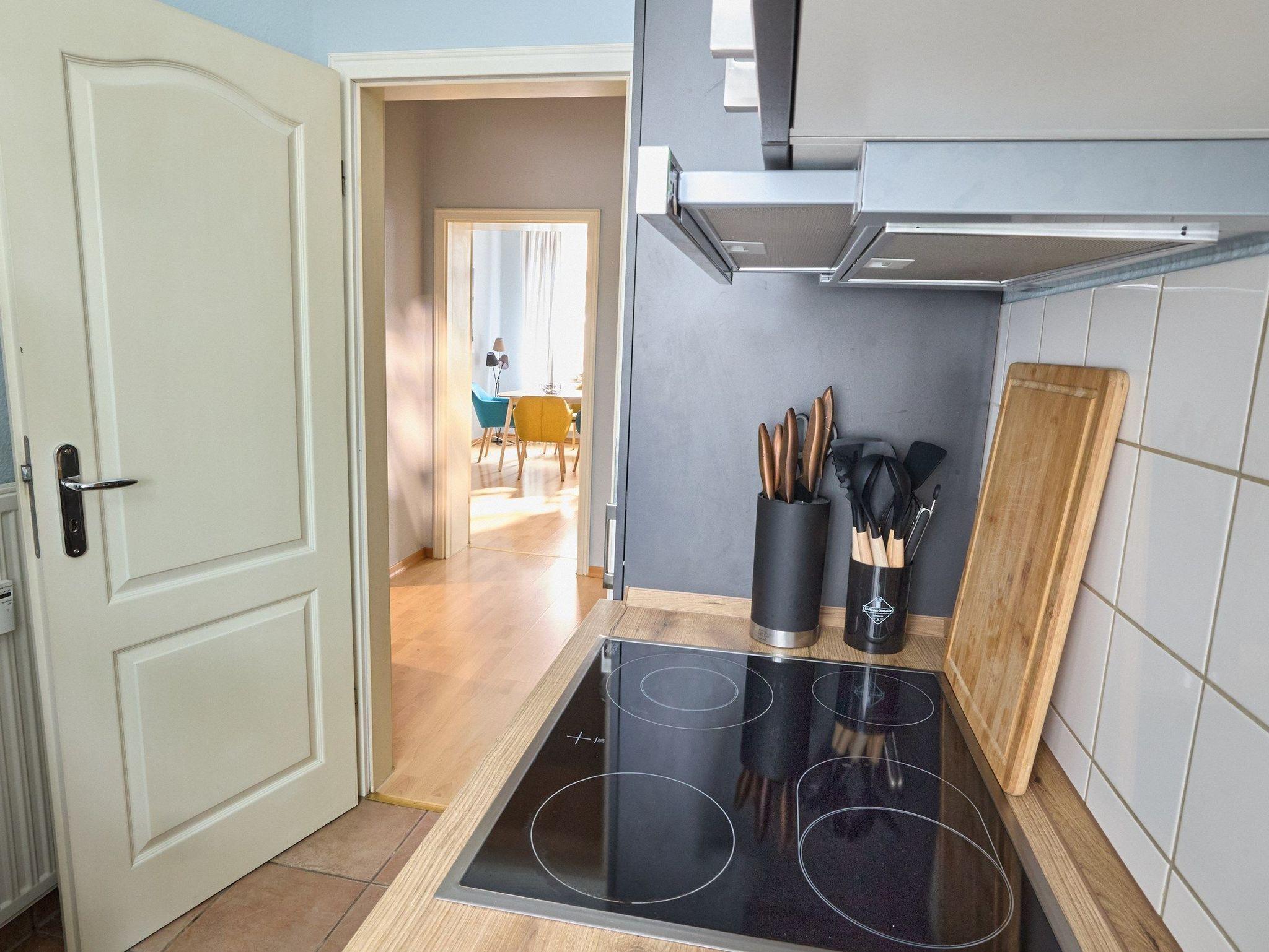 - separate Küche, vollausgestattet mit Backofen, 4-Platten-Ceranfeld, Kühlschrank mit Gefrierfach, Wasserkocher, Kaffeemaschine, Toaster, Geschirr, Besteck uvw.