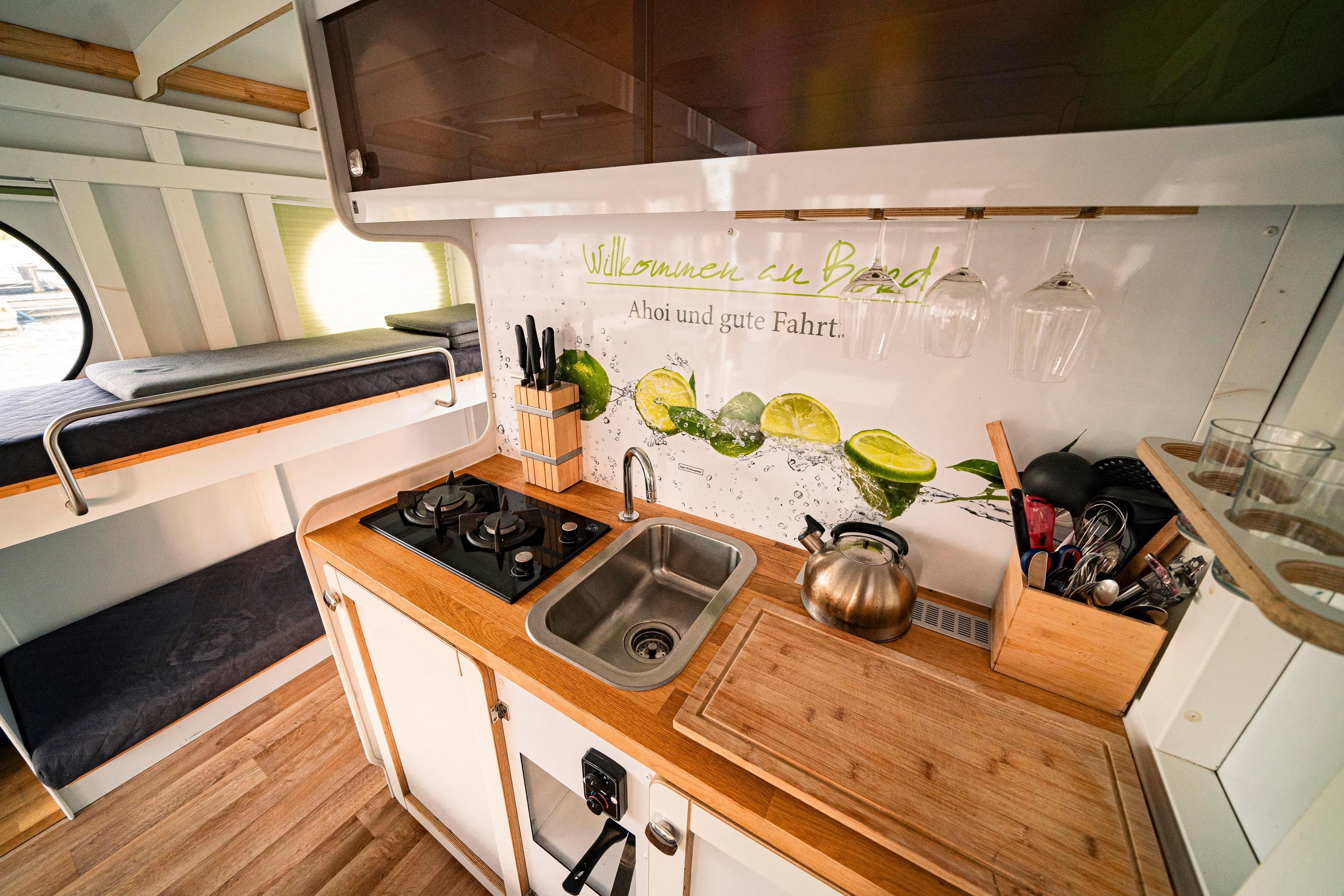 Unser Hausboot bietet Ihnen den Komfort einer Ferienwohnung auf dem Wasser. Aufgrund der Solaranlage können Sie einige Zeit auf dem See verbringen ohne eine Marina anlaufen zu müssen. Das absolute Highlight ist unsere Dachterrasse. Von hier aus können Sie den Sonnenauf- und Sonnenuntergang genießen. In der Küche finden Sie alles was für die Zubereitung eines guten Essens erforderlich ist. Starten Sie Ihr persönliches Abenteuer mit einem der Hausboote.