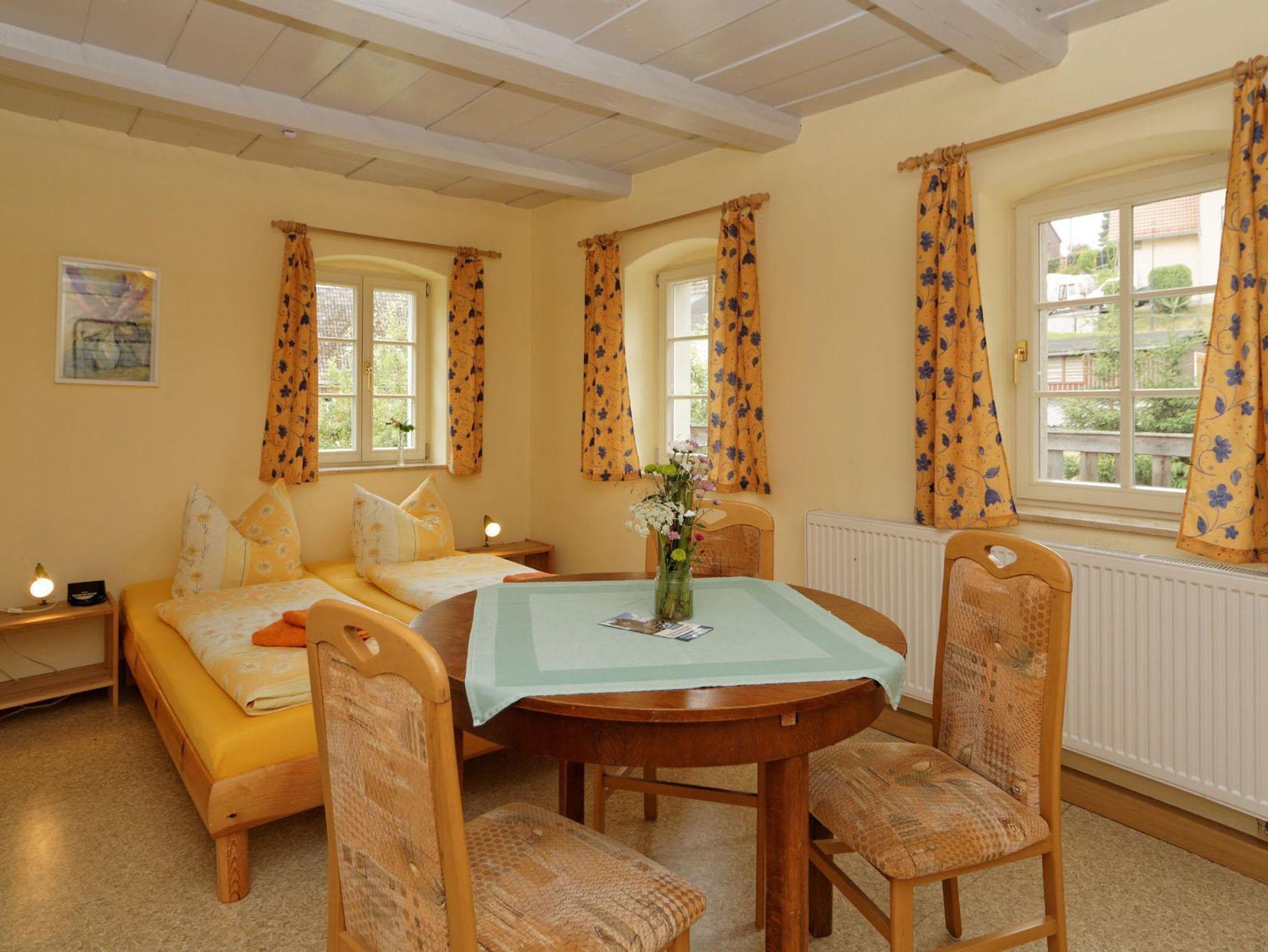 Das Ferienhaus besteht aus sechs einzelnen Wohneinheiten, die jeweils mit einem Doppelbett und einem Doppelstockbett bzw. Schlafcouch im zum Teil abgetrennten Schlafraum sowie einem Bad mit Dusche ausgestattet sind. Davon liegen zwei Wohneinheiten mit einem Raum mit Doppelbett und erhöhter Schlafebene im Spitzboden sowie einem Bad im Dachgeschoss. Bettwäsche und Handtücher sind nicht im Preis inklusive, können jedoch gegen Gebühr von 8,00 € pro Set gemietet werden. Zur gemeinsamen Nutzung steht eine Wohnküche mit zwei angegliederten Aufenthaltsräumen, zudem zwei Terrassen und die Spielwiese zur Verfügung. Auf Wunsch bereiten wir Ihnen ein Frühstück im Haus vor oder Sie kommen in die ca. 300 Meter entfernte Ottendorfer Hütte zum Essen.
