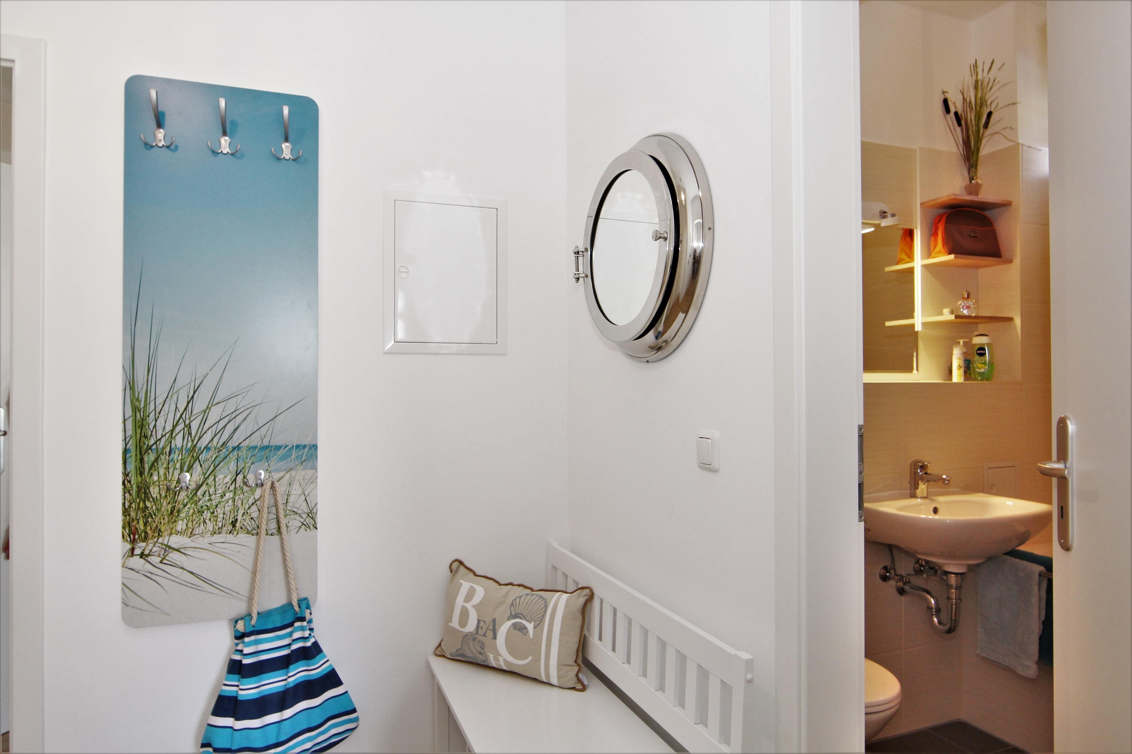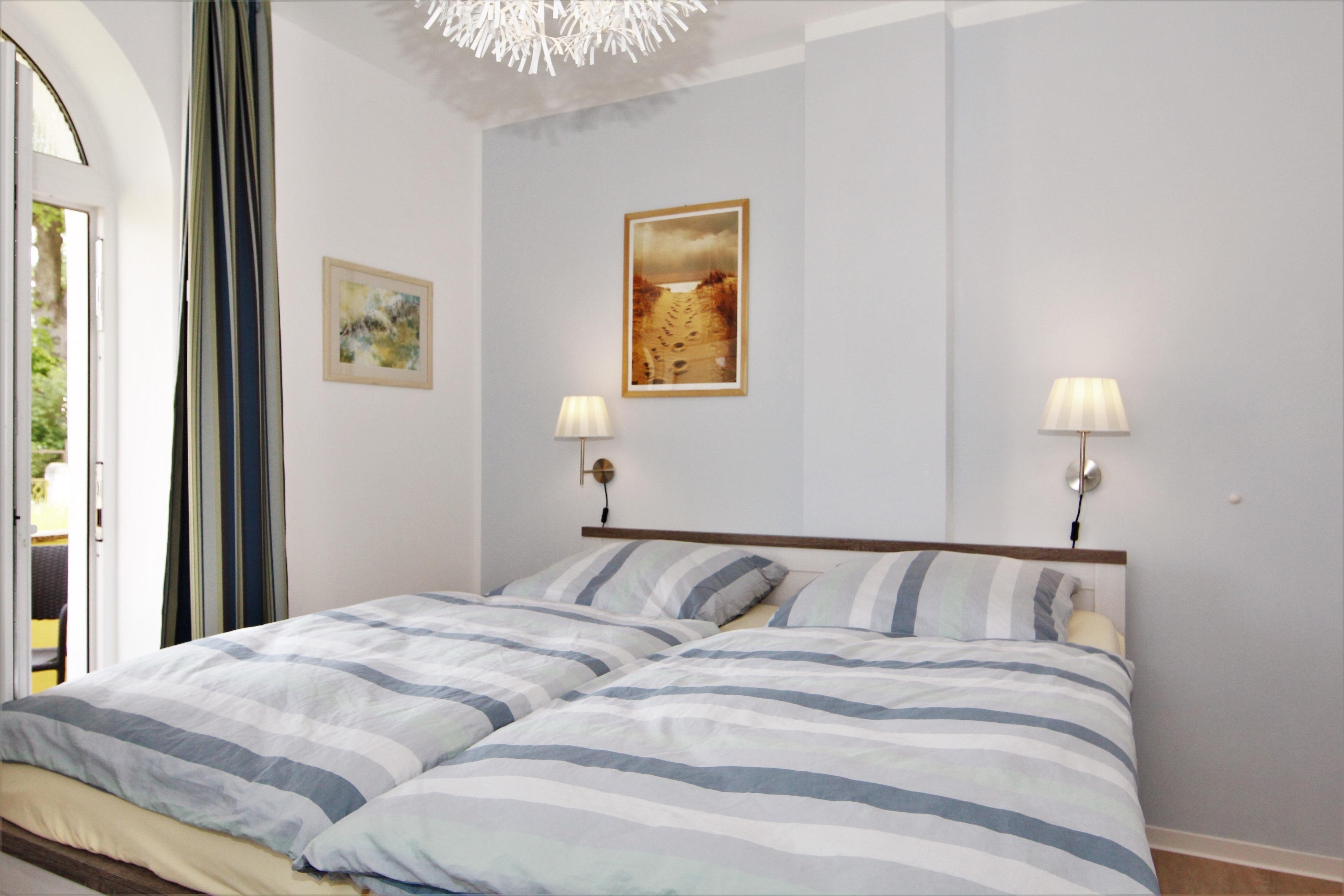 Dieses gepflegte 45 qm große 2-Zimmer-Appartement liegt im Hochparterre und eignet sich für 2-4 Personen. Ausgerichtet zur Ostsee in Richtung Promenade können Sie auf selbige bereits einen Blick erhaschen. Die Wohnung ist hell in modernem Landhausstil eingerichtet. So finden Sie ein Wohnzimmer mit gemütlichem Sofa mit Schlaffunktion (Liegefläche 140 x 195) sowie den einladenden Essbereich direkt vor deckenhohen Fenstern. Die im Wohnbereich integrierte Küchenzeile ist mit Geschirrspüler, Cerankochfeld, Backofen etc. ausgestattet. Das helle Schlafzimmer verfügt über ein Doppelbett mit getrennten Matratzen (90x200) in Komforthöhe und genügend Schrankraum. Für ein jüngeres Kind steht hier wahlweise ein Schlafsessel zum Ausklappen zur Verfügung. Aus dem Schlafzimmer haben Sie Zugang zu einem windgeschützten Balkon in süd-östlicher Ausrichtung, der die Gäste schon mit Morgensonne verwöhnt und zum gemütlichen Verweilen einlädt. Das moderne Bad mit kleinem Fenster bietet eine Badewanne mit Duschabtrennung und Waschtisch/WC. Ein kleiner Abstellraum im Treppenhaus gehört zur Wohnung. Ein Pkw-Stellplatz befindet sich auf dem Grundstück und ist der Wohnung zugeordnet. Einen Fahrradständer gibt es am Haus.