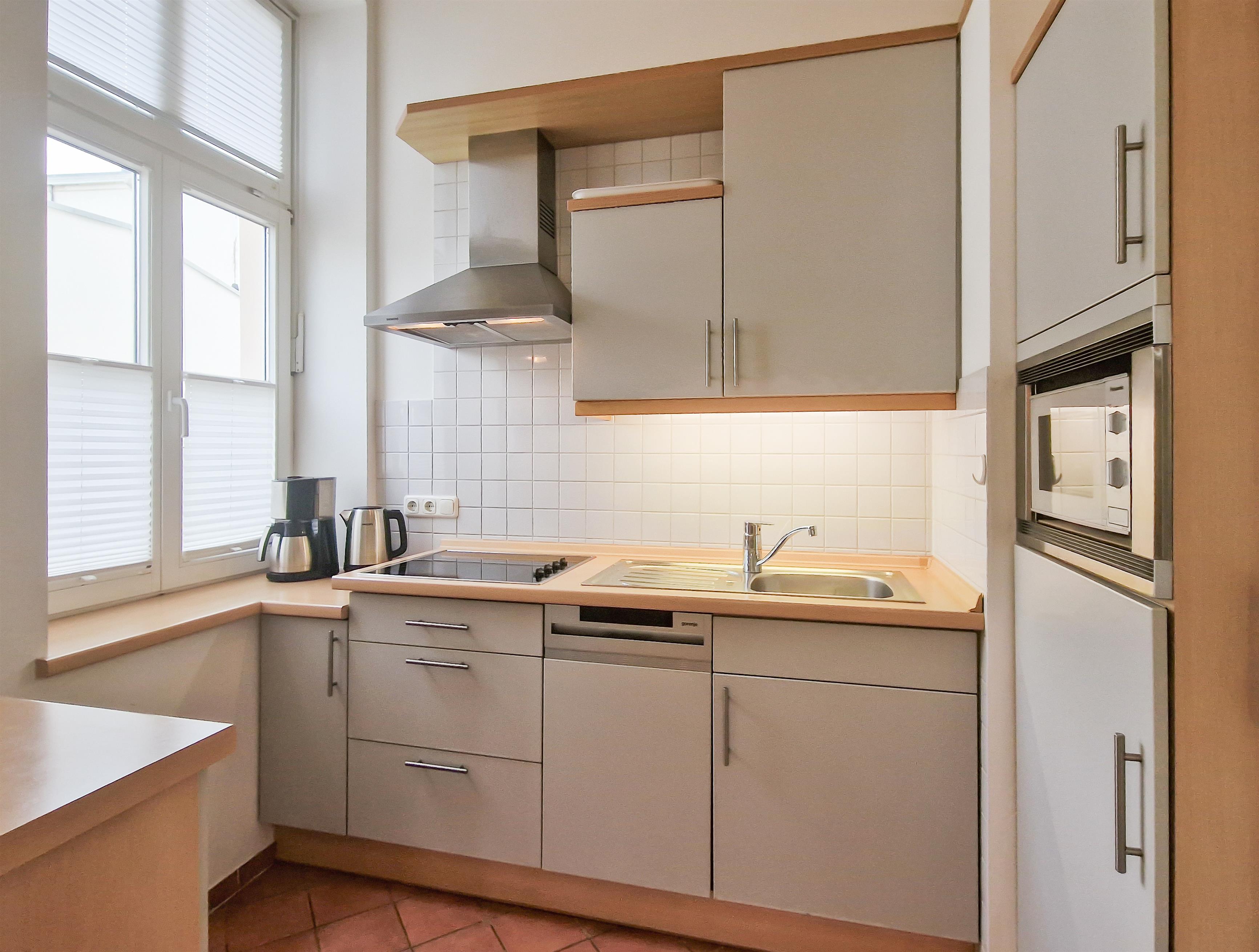 Diese 67 qm große 4- Zimmer Ferienwohnung im Erdgeschoss mit drei Schlafzimmern eignet sich für 2 bis max. 5 Personen. Im gemütlichen Wohnraum steht den Gästen eine Couchecke und Flat-TV zur Verfügung. Die an den Wohnbereich angrenzende offene Küche ist mit Cerankochfeld, Geschirrspüler, Kühlschrank und Mikrowelle ausgestattet. In der lichtdurchfluteten, geschlossenen Loggia (Fenster lassen sich öffnen) ist der Essplatz untergebracht. Von hier aus können Sie einen Blick auf die Ostsee erhaschen. Die drei Schlafräume bieten 5 Personen bequem Platz; mit einem Doppelbett mit getrennten Matratzen (90 x 200), einem größeren Einzelbett (120 x 200) und einem Etagenbett (100 x 200). Das großzügige Bad ist mit Dusche sowie Badewanne, Doppelwaschbecken und WC ausgestattet. Zwei Pkw-Stellplätze (hintereinander) befinden sich auf dem Grundstück. Für Fahrräder befindet sich lediglich ein Fahrradständer am Haus.