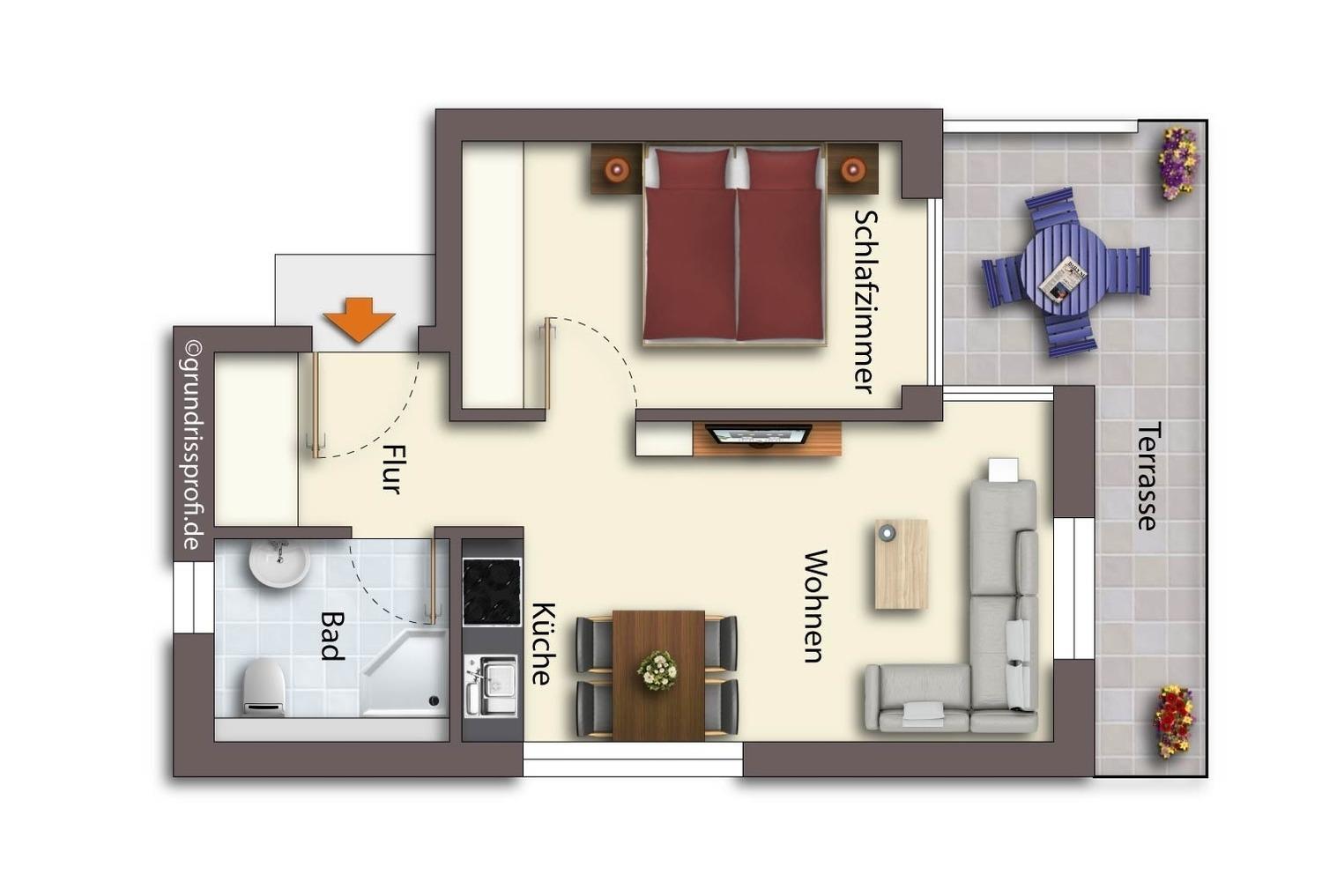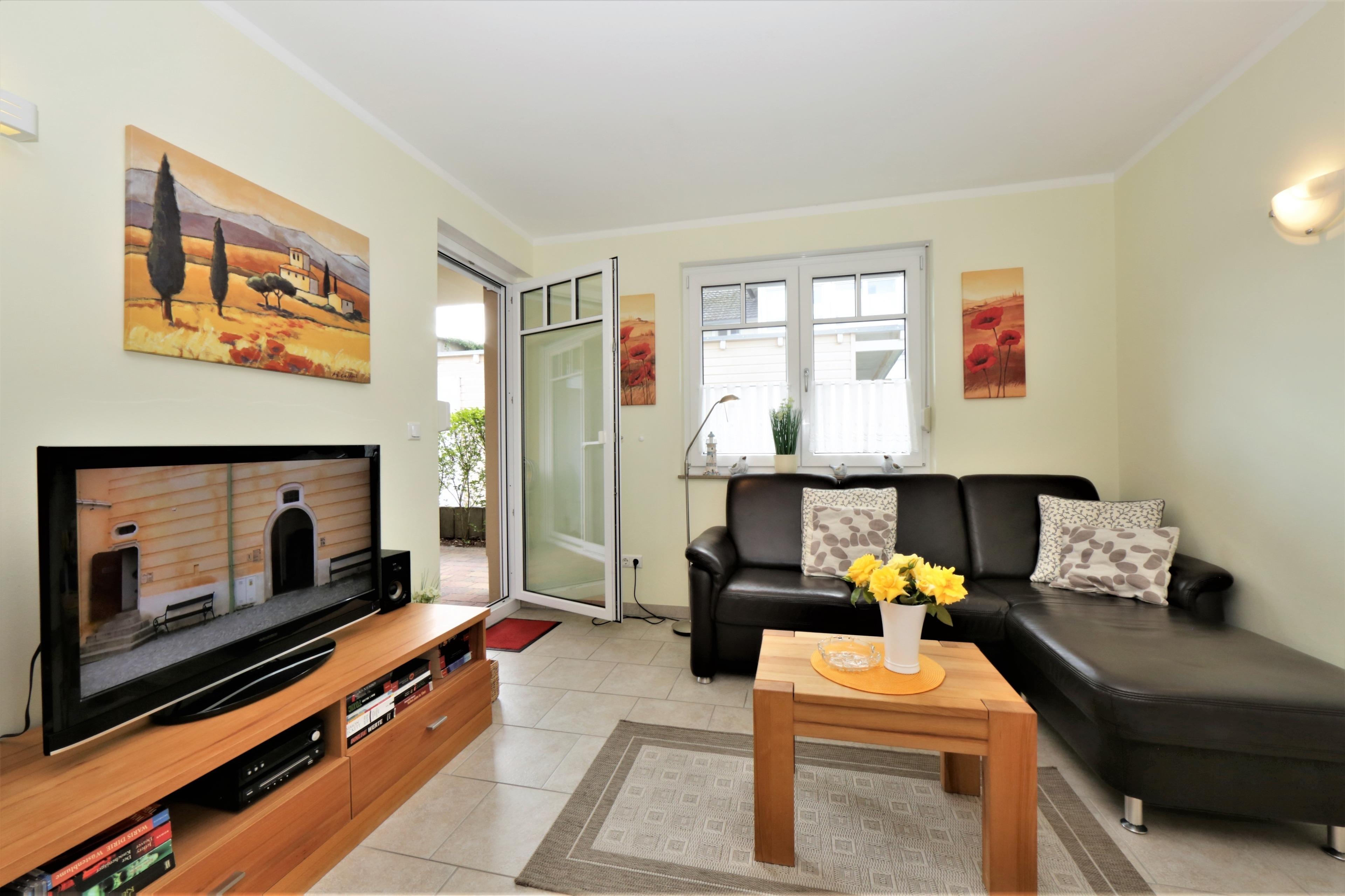 Diese 41 qm große 2-Zimmer Wohnung bietet Ihnen einen modernen hellen Wohnraum mit einer Sitzgarnitur, Flat-TV und Radio. Ein großer Esstisch im hinteren Bereich lädt zu gemeinsamen Mahlzeiten ein. Die Vollküche inclusive Geschirrspüler, Kühlschrank, Cerankochfeld, Backofen etc. ist offen im Wohnbereich integriert. Das Schlafzimmer ist mit einem Doppelbett mit getrennten Matratzen (90 x 200) sowie reichlich Schrankraum eingerichtet und verfügt über Insektenschutz und Rollläden. Die Terrasse zum Südwesten können Sie sowohl vom Wohn- als auch vom Schlafraum betreten. Das Bad ist mit Dusche und Waschbecken/WC ausgestattet. Ein Pkw-Stellplatz befindet sich auf dem Grundstück und ist der Wohnung zugeordnet.
