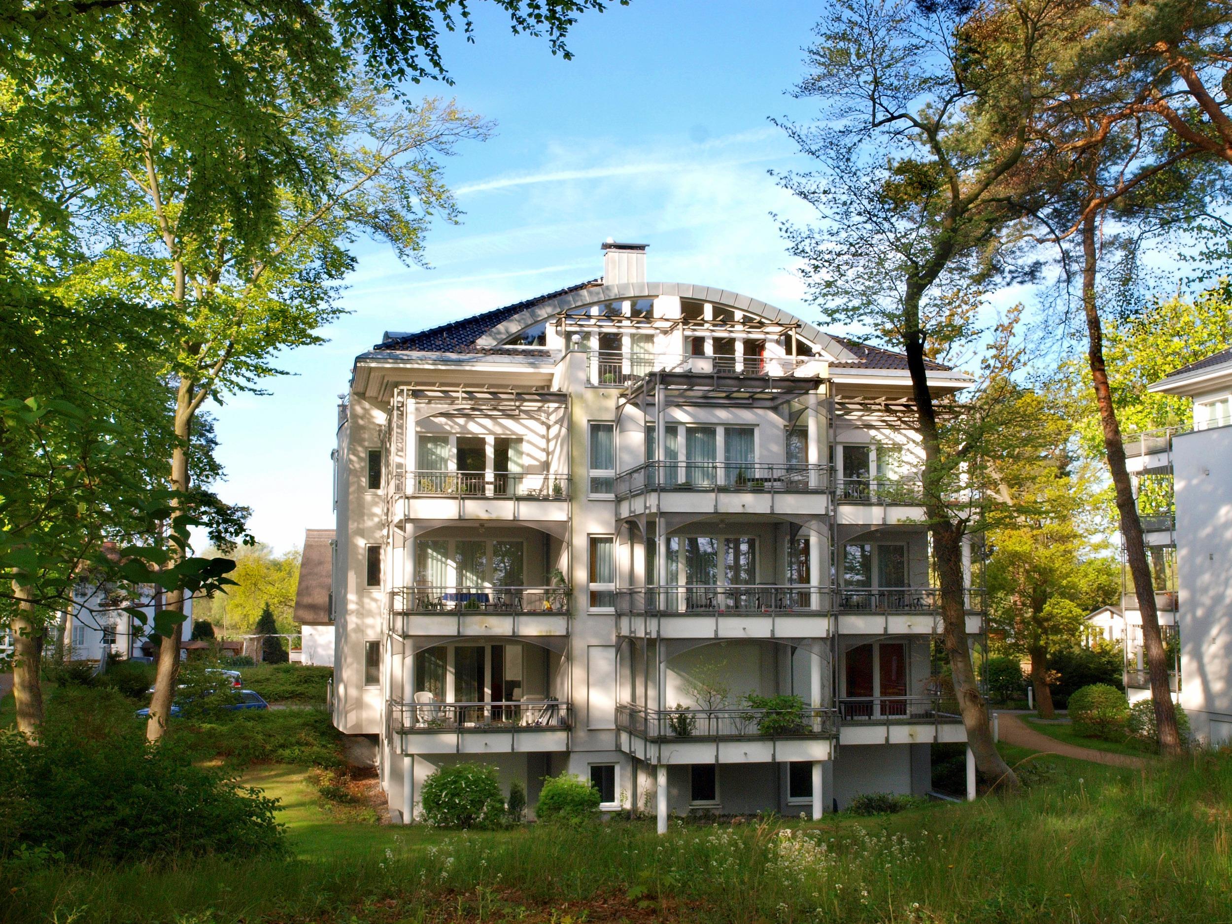 Diese 80 qm große 2-Zimmer Wohnung im Dachgeschoss erreichen Sie über den Aufzug. Der großzügige Wohnbereich mit reichlich Fenstern verfügt über eine gemütliche Sitzecke mit großem Flat-TV und Musikanlage. Die moderne Vollküche incl. Spülmaschine, Ceranfeld, Backofen, Kühlschrank, Mikrowelle etc. bietet viel Platz. Ein Essplatz für 6 Personen ist ebenfalls offen im Wohnraum integriert. Vom Essplatz können Sie den angrenzenden Seebalkon betreten, von dem aus Sie durch die Kiefern einen Blick auf die Ostsee erhaschen können. Am Schreibtisch können Sie Ihre Ansichtskarten mit Urlaubsgrüßen versehen. Das große Schlafzimmer mit einem Bad en suite ist mit einem Doppelbett mit getrennten Matratzen (90 x 200) und genügend Schrankraum ausgestattet. Hier steht Ihnen ein zweiter Flat TV zur Unterhaltung zur Verfügung. Das großzügige Bad verfügt über Badewanne und Waschtisch/WC. Vom Bad als auch aus der Küche können Sie den kleineren Ostbalkon betreten, der am Vormittag viel Sonne verspricht. Das zweite Bad erreichen Sie aus der Diele, es ist mit Dusche und Waschtisch/WC ausgestattet. Ein PKW-Stellplatz steht Ihnen auf dem abgeschlossenen Grundstück zur Verfügung. Ein Abstellraum für Fahrräder und ein Waschraum mit Waschmaschine und Trockner sind im Keller vorhanden (Münzbetrieb). Im Nachbarhaus "Villa Darja" erreichen Sie die Wellness-Räume mit Sauna (Münzbetrieb).
