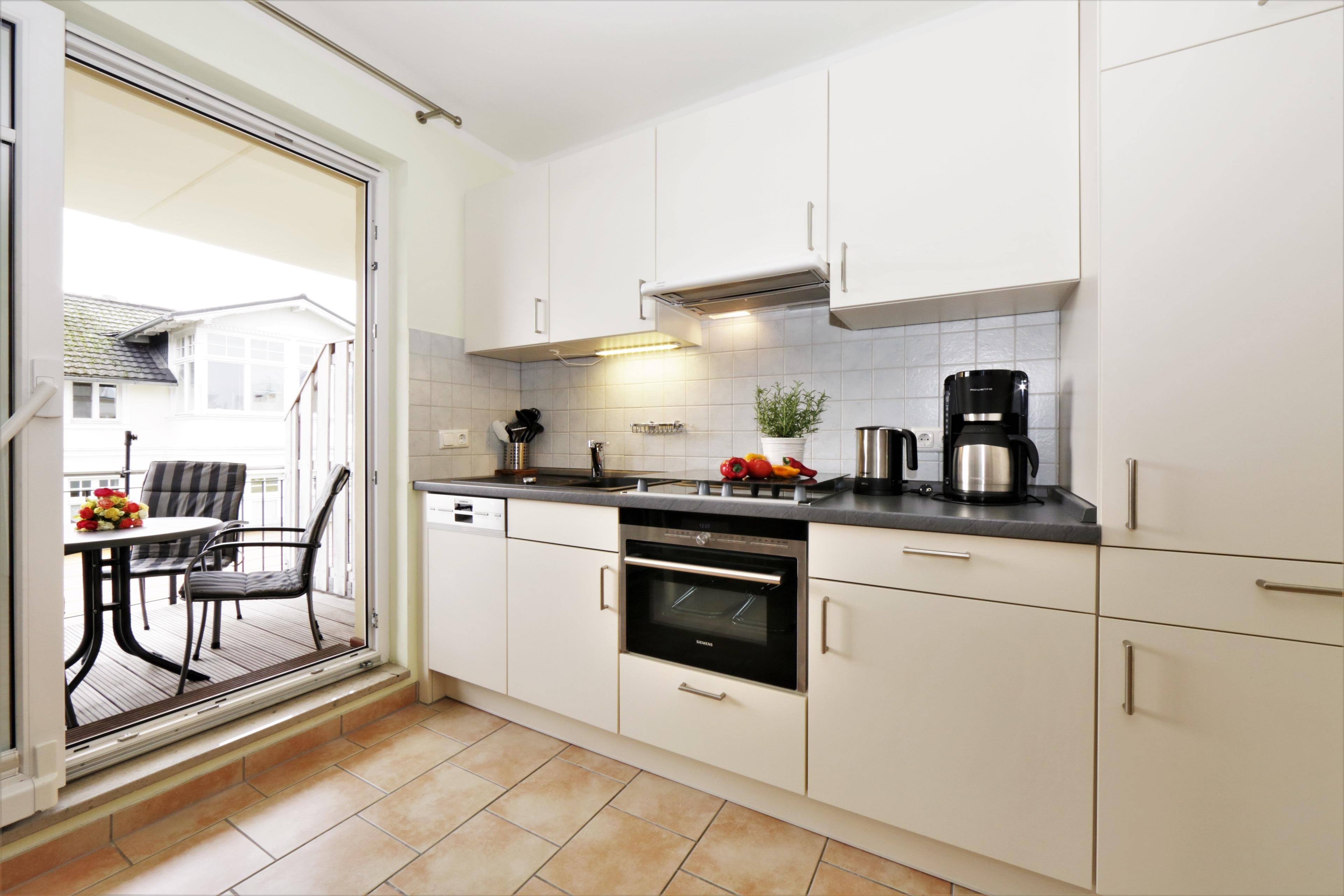 Dieses modern eingerichtete 2-Zimmer-Appartement bietet Ihnen einen angenehm hellen Wohnraum mit einer gemütlichen Sitzecke (Schlafcouch-Funktion mit den Maßen 1,60m x 2,00m). Der Bereich ist mit hübschen Details und kleinen Leinwänden dekoriert. Nahtlos geht das Wohnzimmer in die integrierte Vollküche über. Hier haben Sie einen großen Esstisch und direkten Zugang zum Balkon, welcher südwestlich ausgerichtet ist. Ihr Schlafzimmer ist mit einem Doppelbett und einem großen Schrank ausgestattet, der Ihnen viel Stauraum bietet. Abgerundet wird die Wohnung durch ein ebenfalls modernes, helles Badezimmer mit Waschmaschine und genügend Ablagemöglichkeiten für den persönlichen Bedarf. Ein PKW-Stellplatz befindet sich auf dem Grundstück und ist mit der Nummer 4 gekennzeichnet.