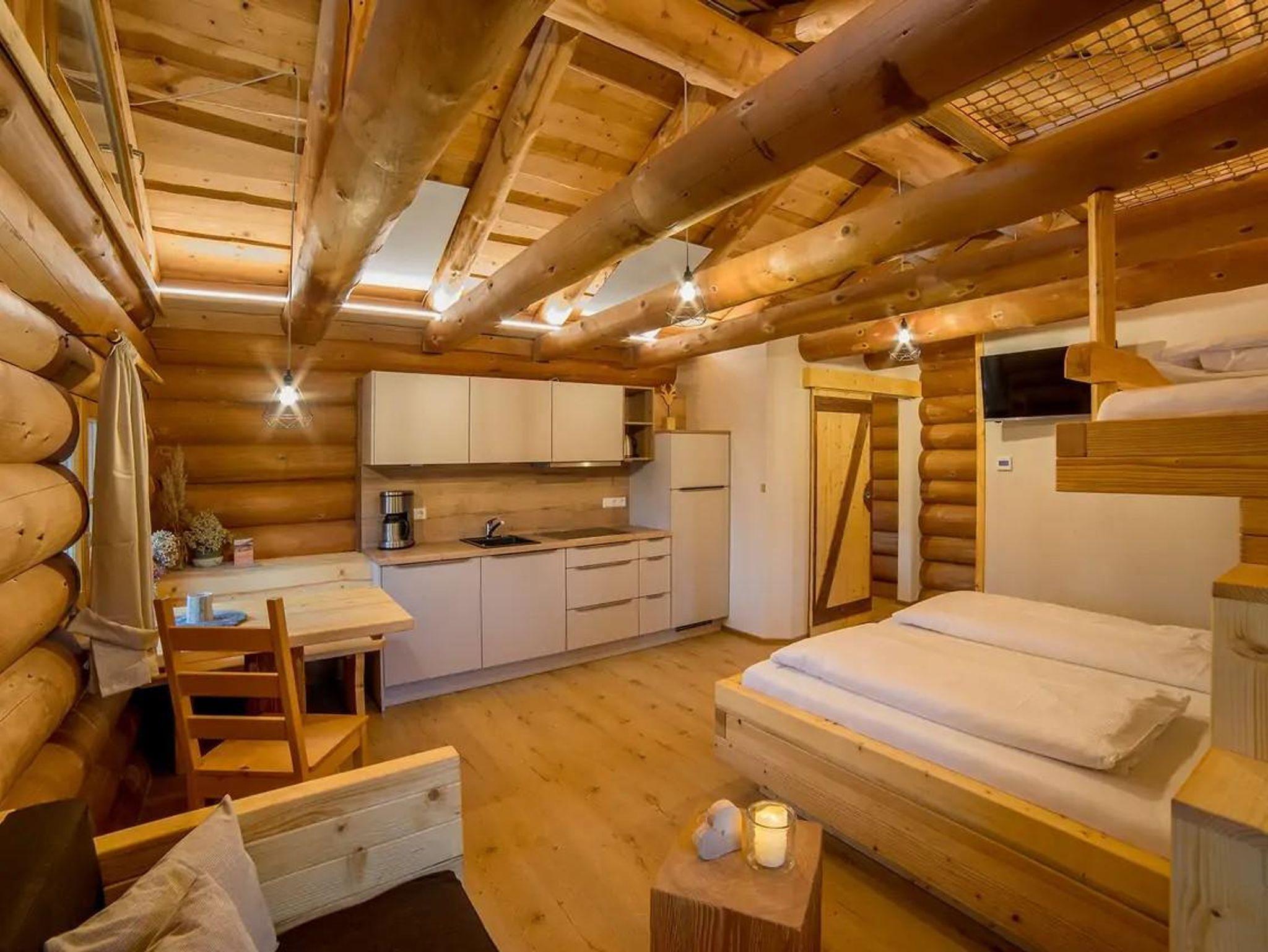 - Ebenerdiger Wohn- und Schlafraum: vollausgestattete Küche mit Herd, Kühlschrank, Spühlmaschine, Kaffeemaschine und Toaster, kleines Bad mit WC (Dusche im angrenzenden Sanitär2)