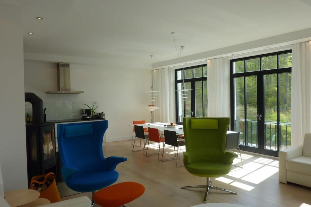 Designer furniture, 2 bedrooms, 50sqm living room, 2 bathrooms, indoor and outdoor swimming pool, sauna, large balcony