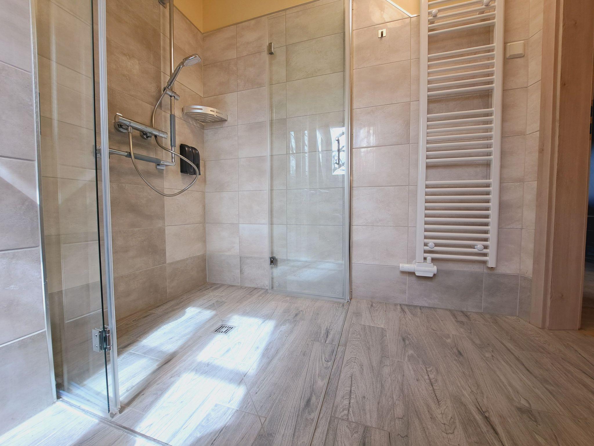 Das Appartment ist barrierefrei und ausgestattet mit einem kombiniertem Wohn-Schlafraum mit einem Doppelbett und einer Schafcouch, einer Einbauküche und einem Bad mit ebenerdigem Duscheinstieg und WC. Direkt vor dem Appartment gibt es eine kleine Terasse.Die Schlüssel erhalten Sie direkt vor Ort. Bitte 30 min vor. Das Appartment ist bequem über einen Lift erreichbar.