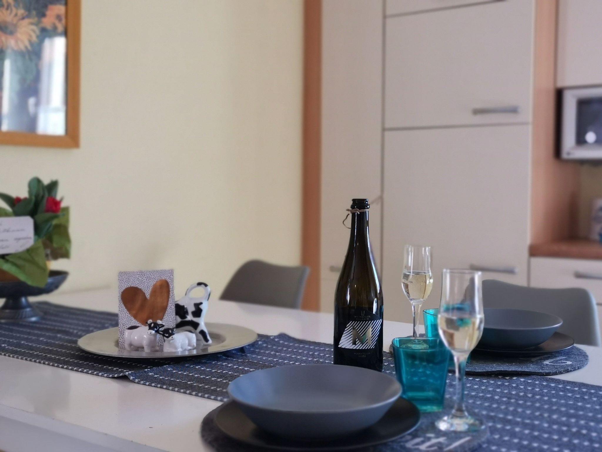 Die Ferienwohnung ist mit einem separatem Schlafraum, einem Wohn-Schlafraum, einer Küche offen zum Wohnzimmer und einem Bad mit Badewanne, DU-WC, TV ausgestattet. Die Ferienwohnung befindet sich im 1. Stock.
