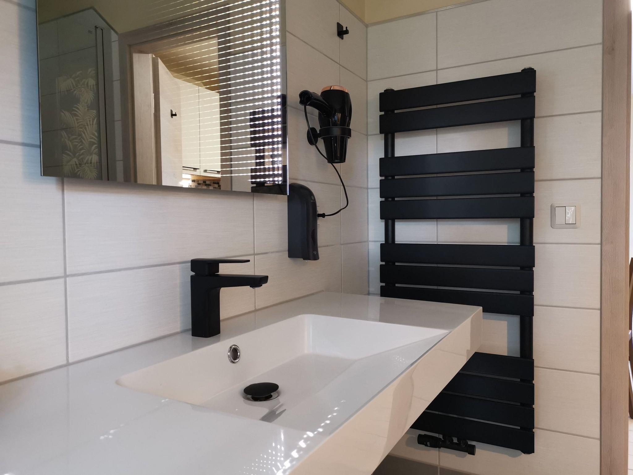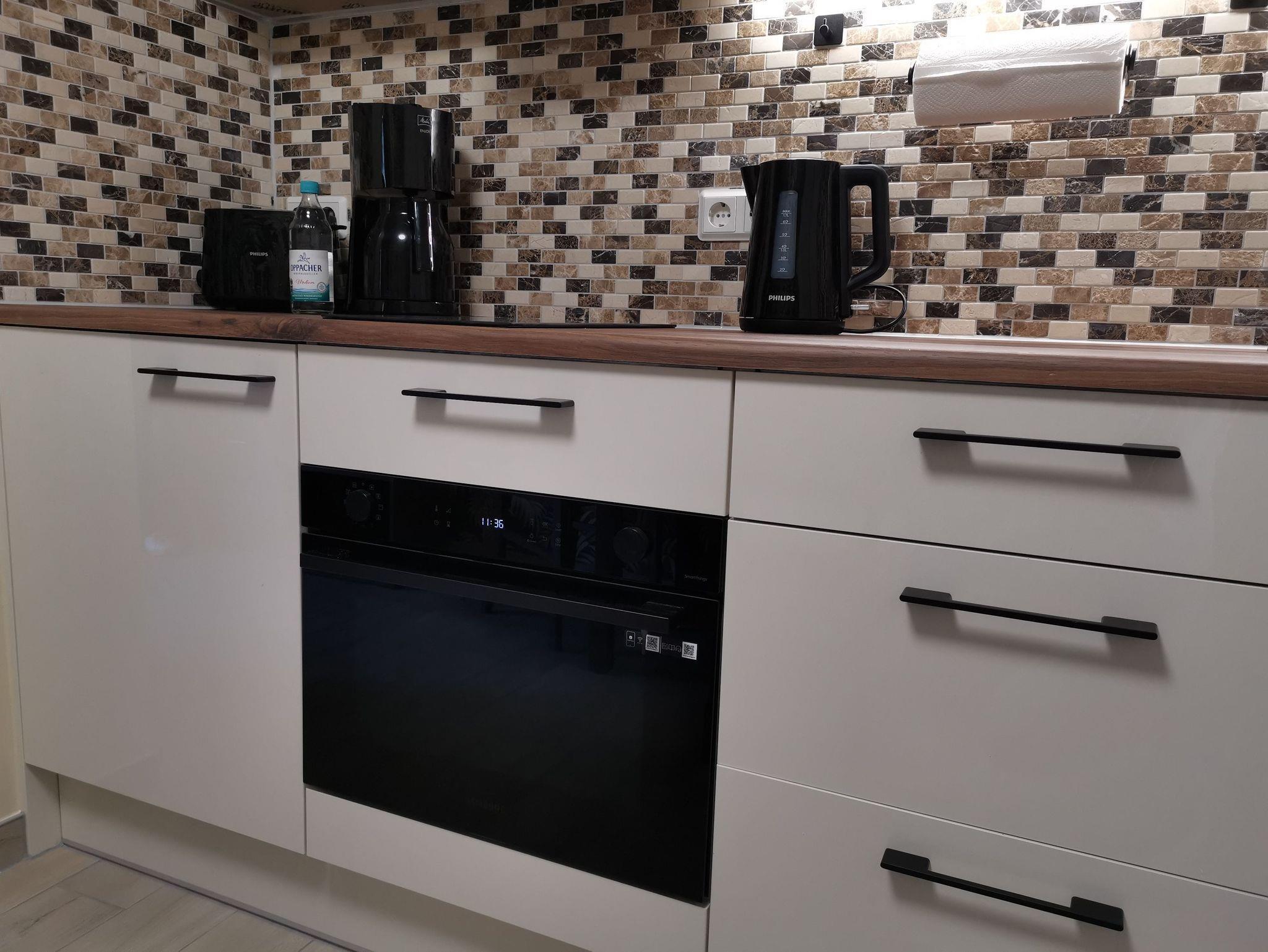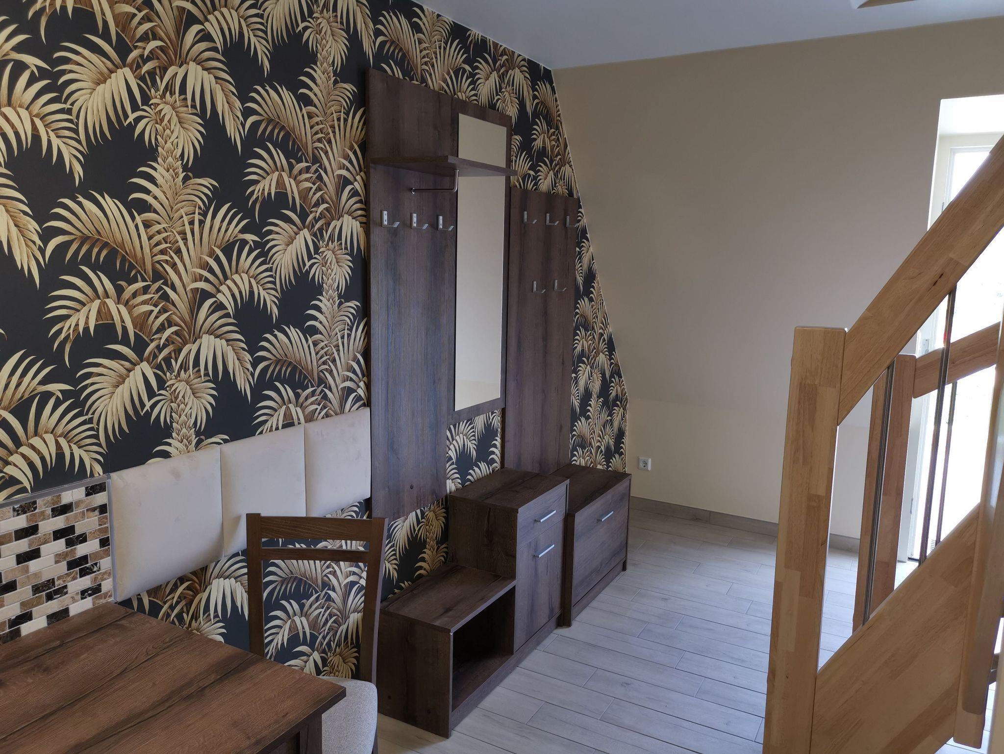 Das Appartment ist auf 2 Etagen modern eingerichtet und hat im oberen Bereich 1 Schlafraum ( Doppelbett und einem Einzelbett), im unteren Bereich ist ein offenes Wohnzimmer mit Einbauküche und einem Bad mit einer großen DU/WC und einem Außenfenster.