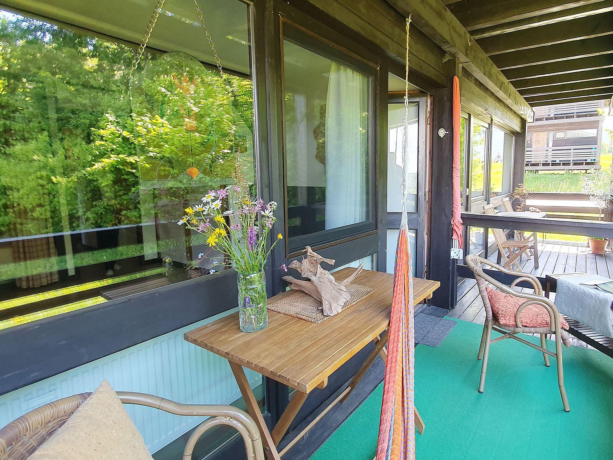 Das Ferienobjekt „Begonie2? befindet sich im Erdgeschoss eines zweigeschossigen, regionaltypischen Holzhauses mit insgesamt 16 Einheiten und verfügt über einen wettergeschützten Fahrradunterstand und einen Freisitz vor der Haustür. Zwei großzügige Stellflächen in unmittelbarer Nähe bieten ausreichend Parkplatz. In der Umgebung liegen – großzügig über eine Hügelkette verstreut – weitere Appartement- und Einzelhäuser, Tennis-, Minigolf- und Grillplätze mit diversen Spielgeräten.